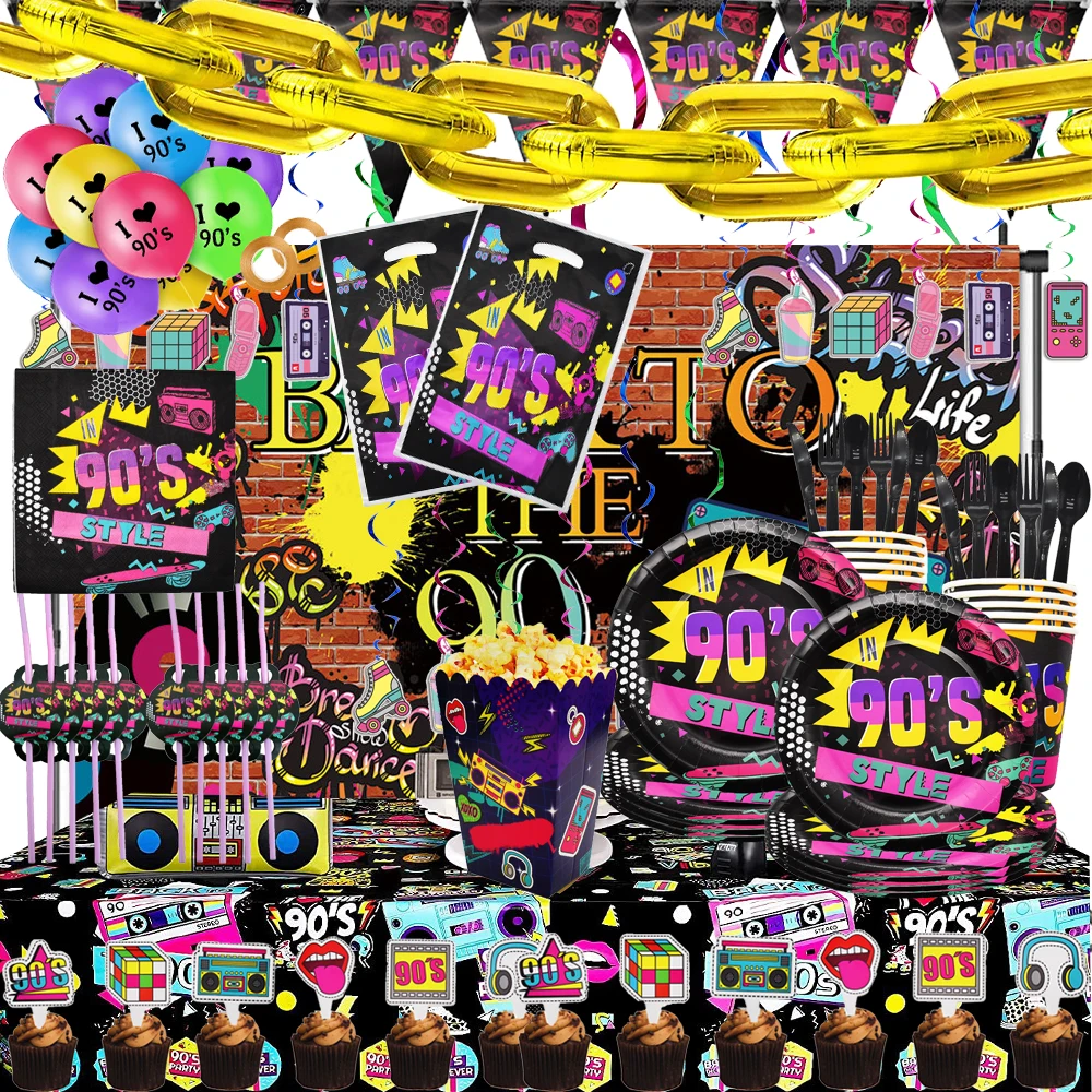 Ретро-радио с изображением кирпичной стены в стиле хип-хоп, граффити, модные товары для дня рождения, тарелки, искусственная скатерть, воздушные шары
