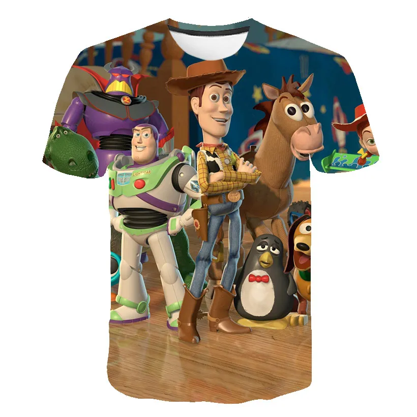 Детская футболка с коротким рукавом, круглым вырезом и принтом История игрушек
