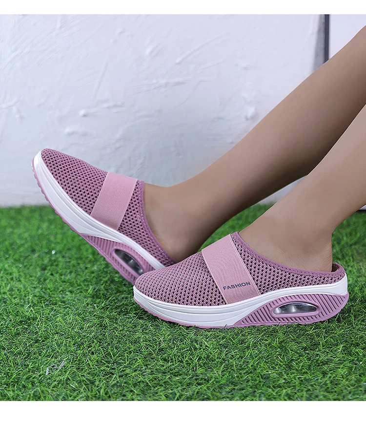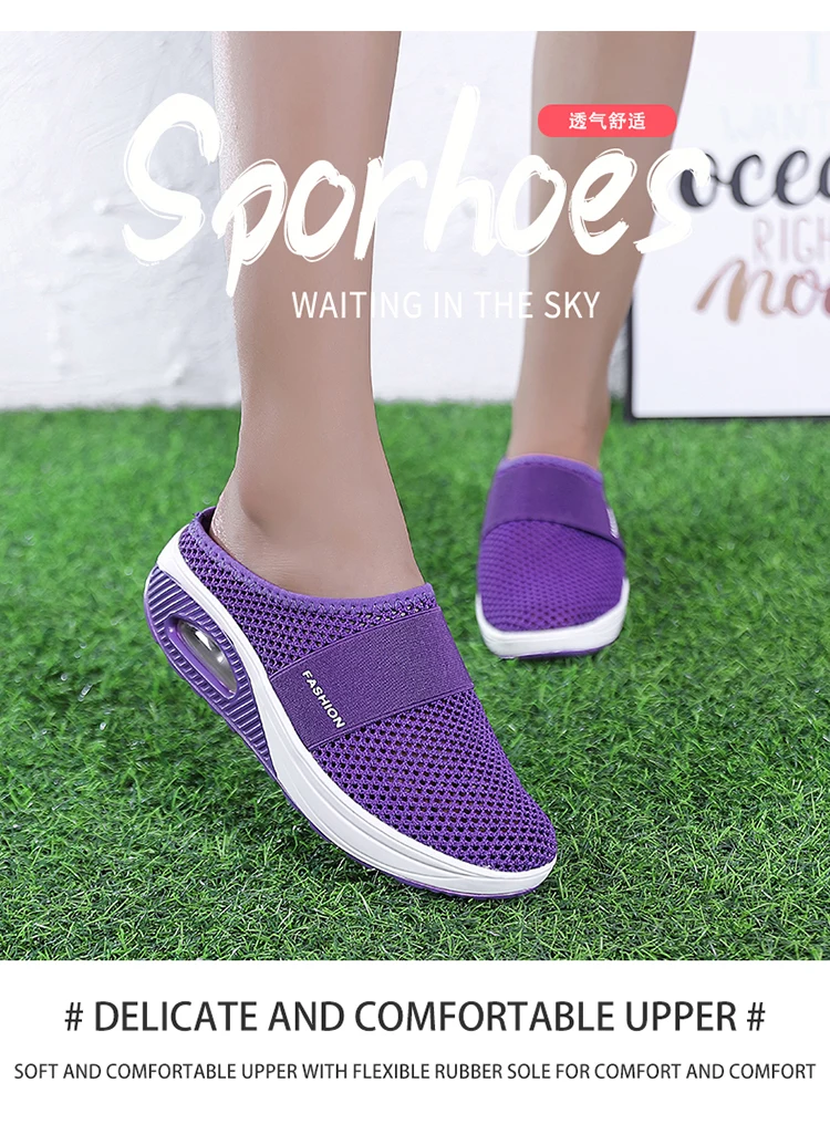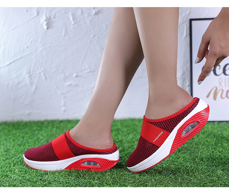 Женские прогулочные туфли без шнуровки с воздушной подушкой, ортопедические женские сетчатые легкие тапочки на танкетке, женские кроссовки