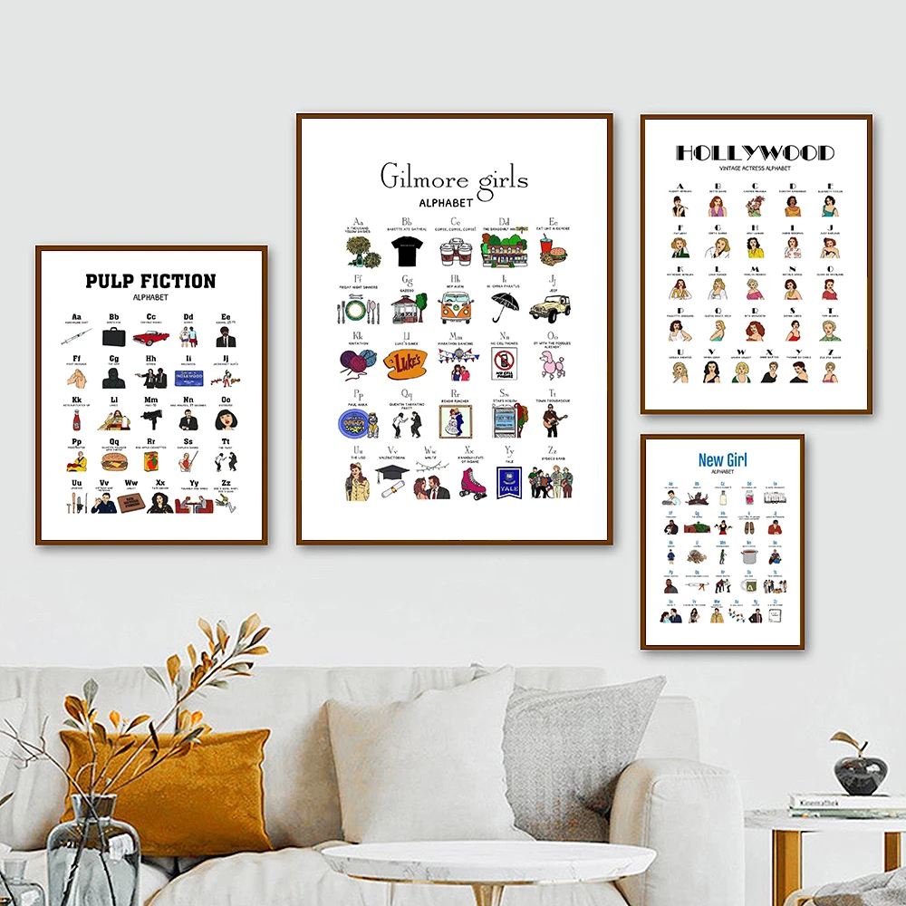 Постер на холсте Gilmore с изображением девушек и друзей, Художественная печать, винтажная сценика, алфавит, холст, постер с изображением целлюлозы, художественная живопись, декор офисной комнаты