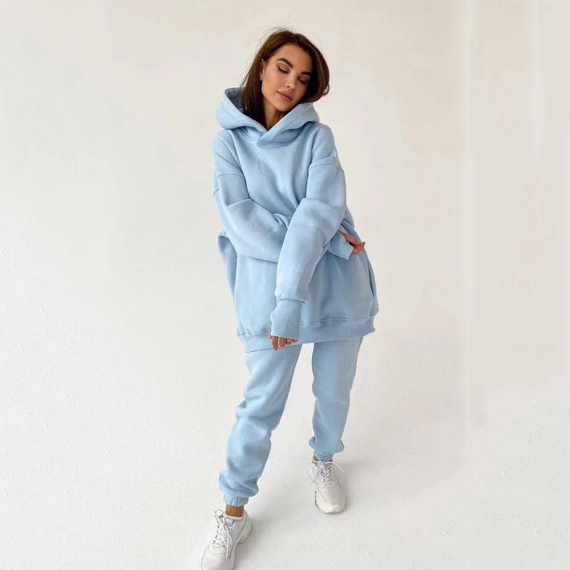 Женский зимний спортивный костюм, теплые свободные толстовки, женская одежда из синего флиса, повседневный Женский пуловер, спортивная одежда
