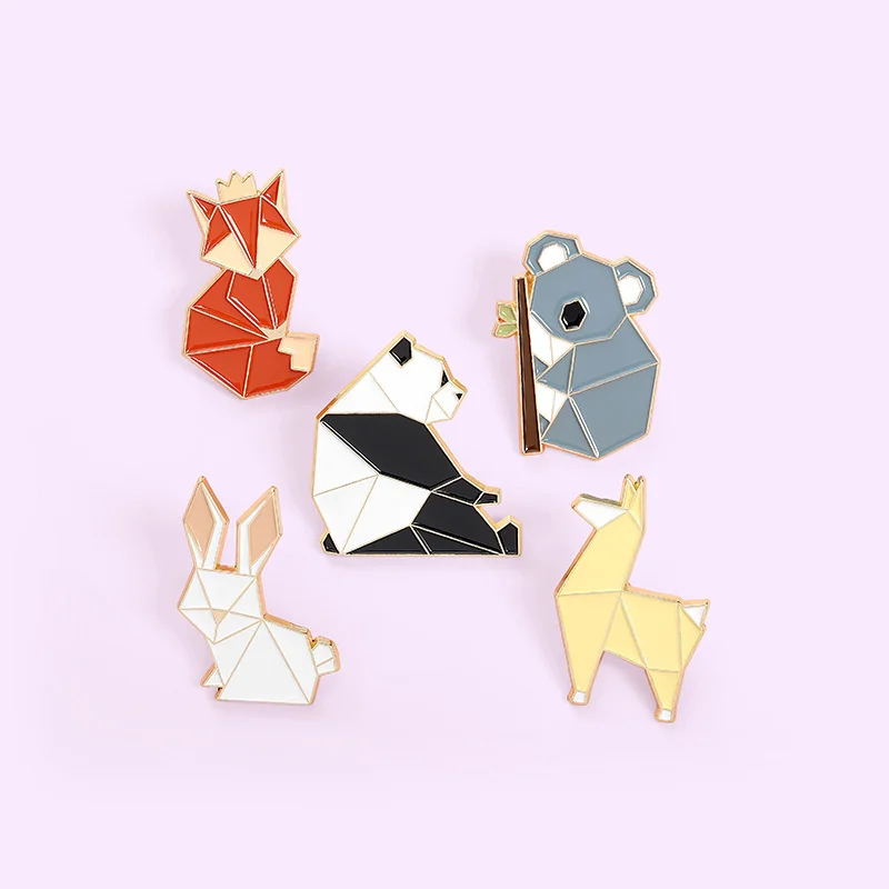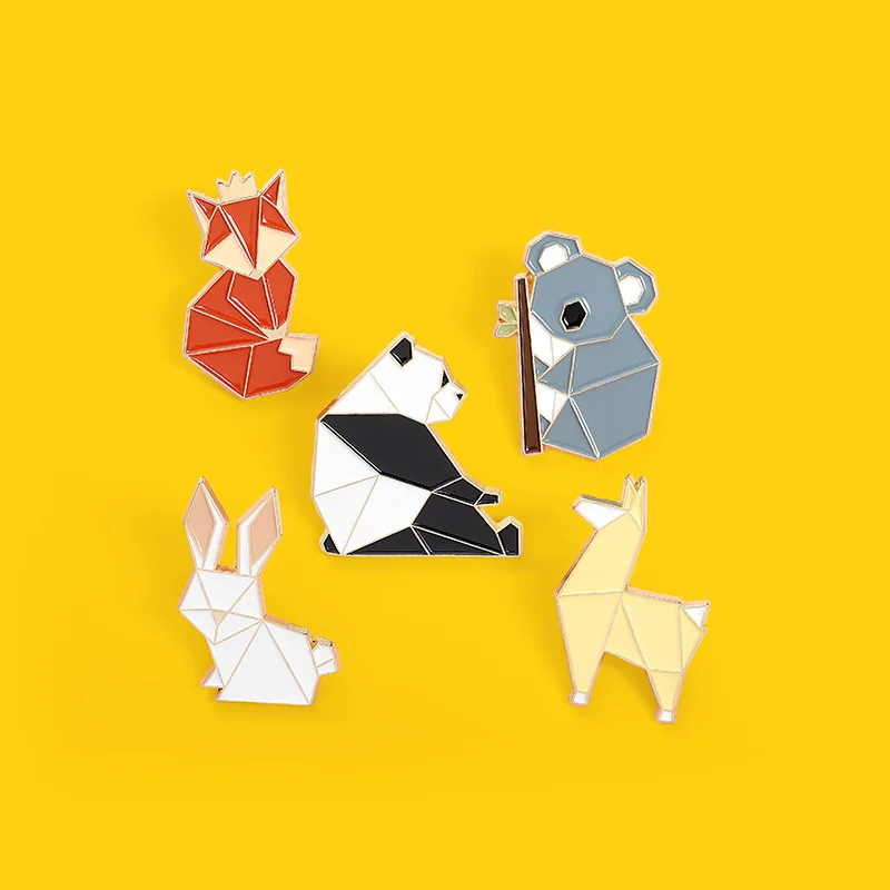 Оригами, лиса, панда, кролик, коала, альпака, эмалированная булавка...