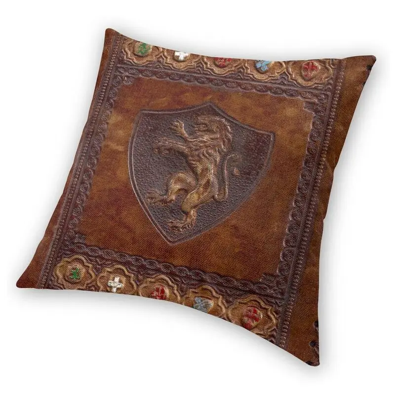 Античная кожаная квадратная подушка с инкрустацией в средневековом стиле, декоративная винтажная подушка с цветочной текстурой, наволочка для дивана