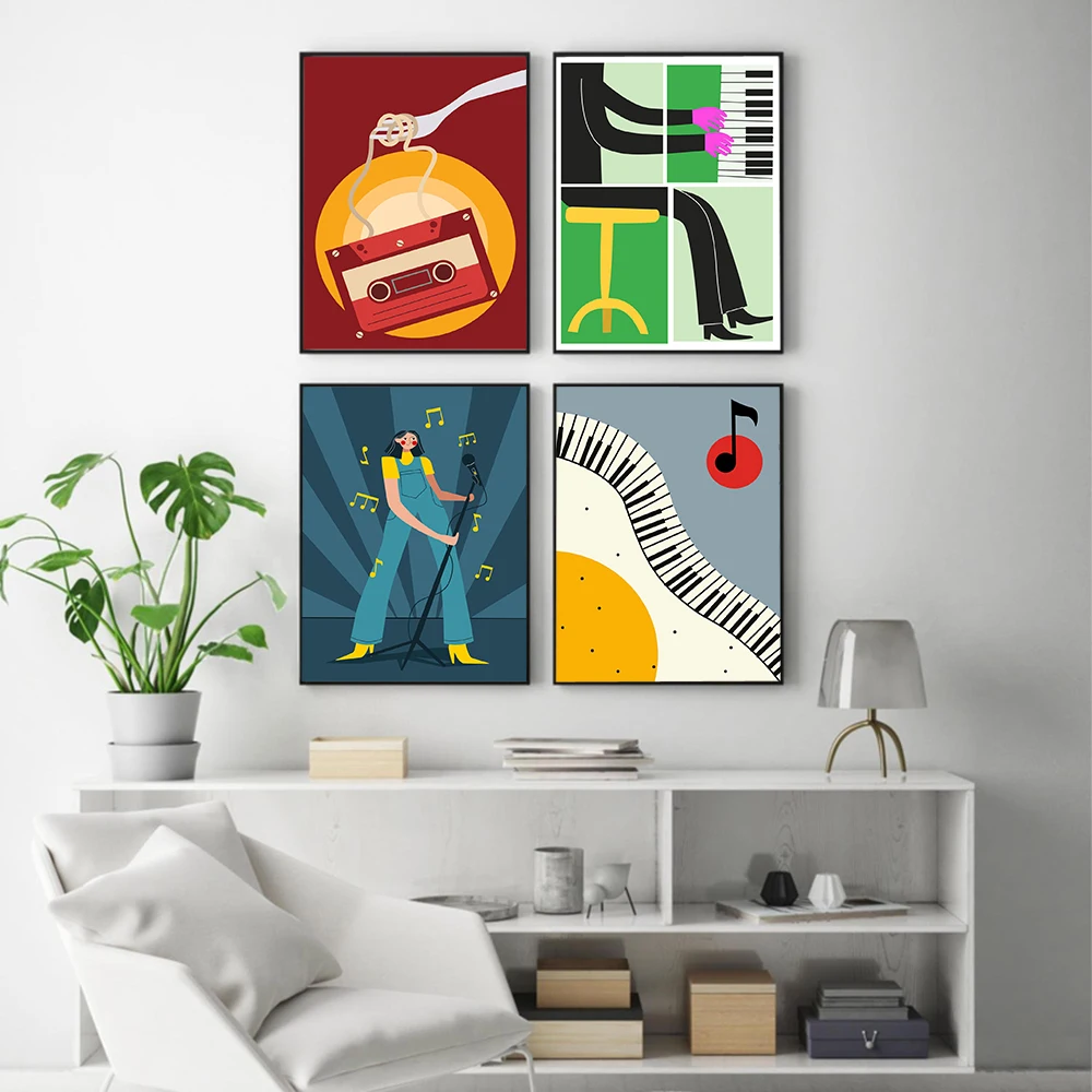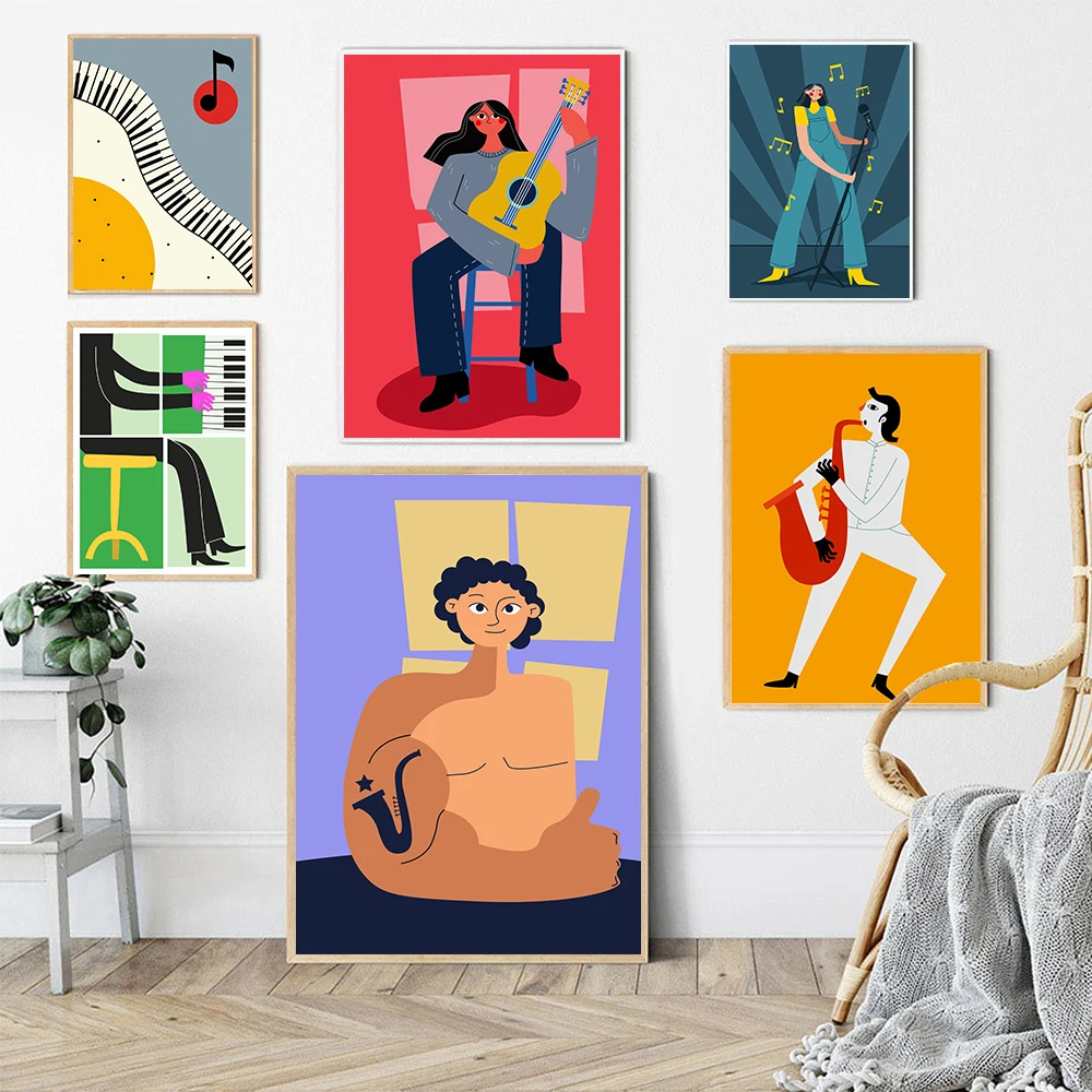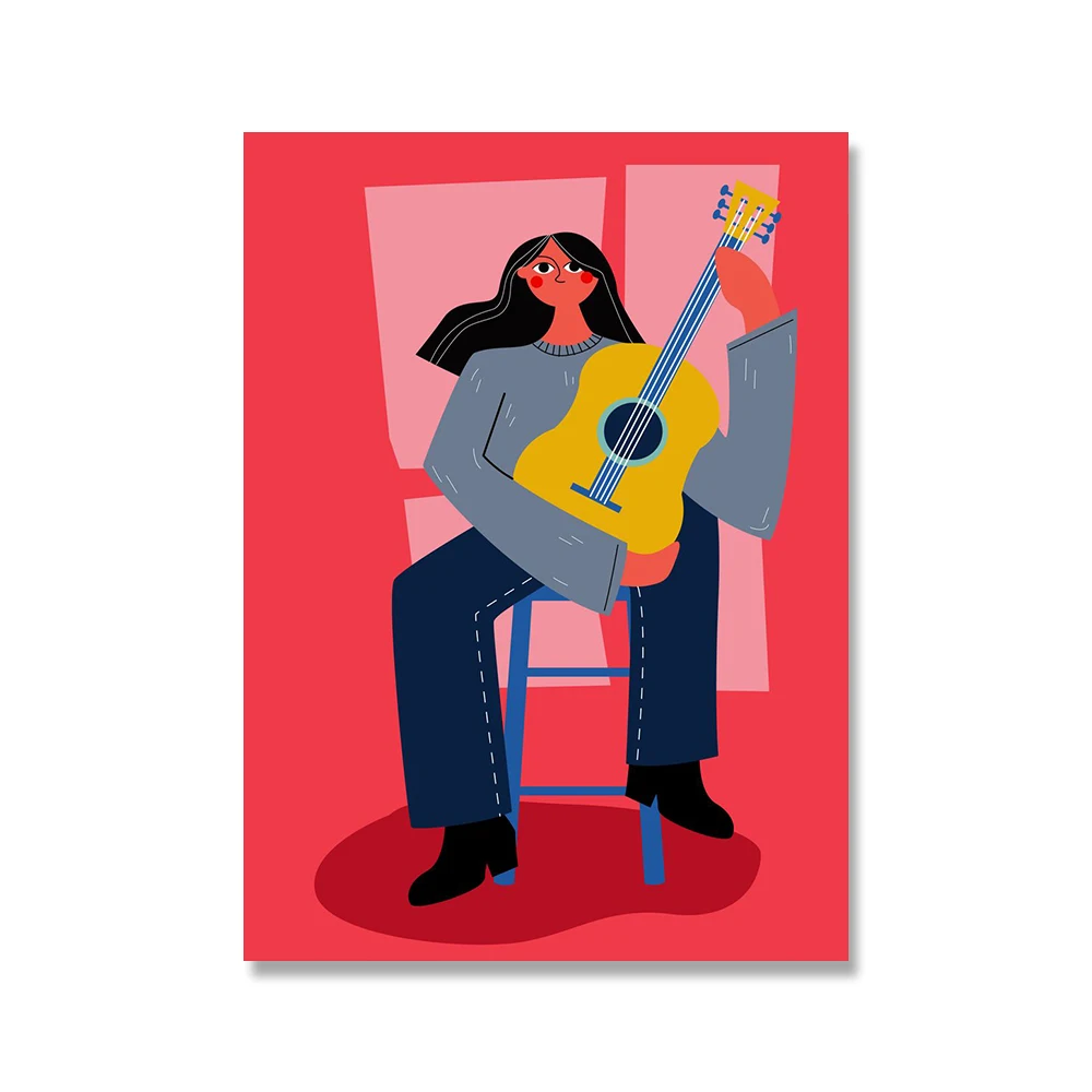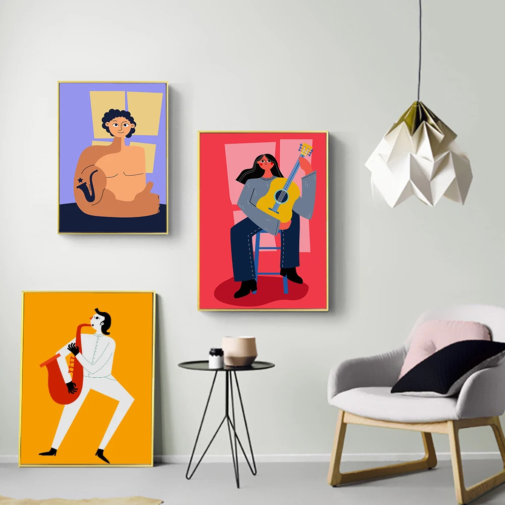Постер на холсте с изображением девушек, играющих в гитару, забавный Музыкальный Саксофон, лента с рисунком, цветные настенные картины, декор для детской комнаты и гостиной