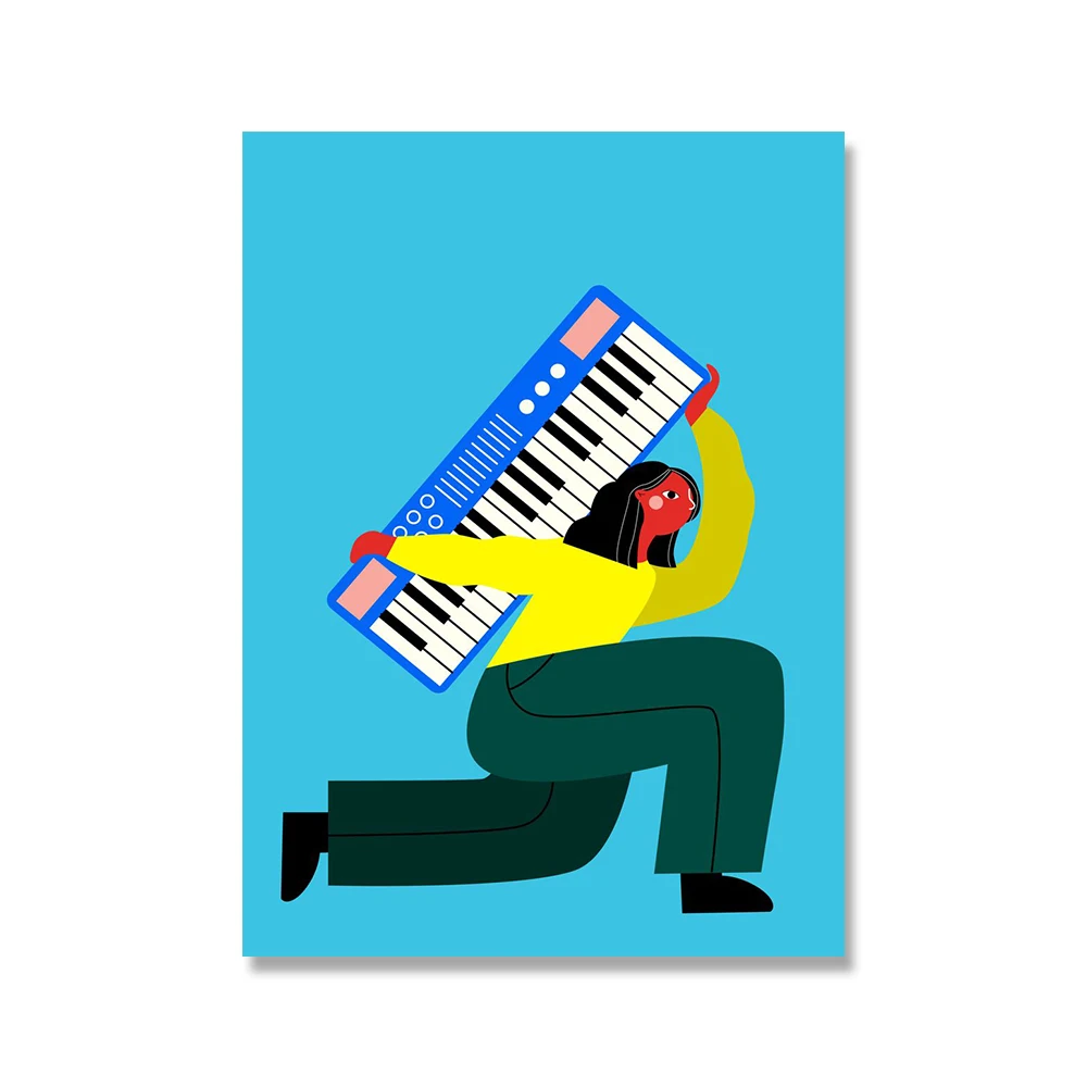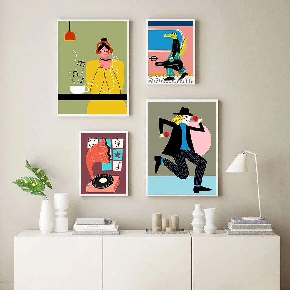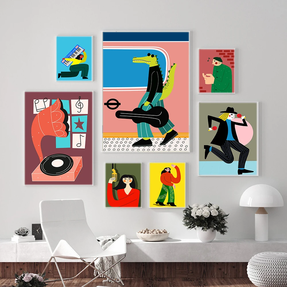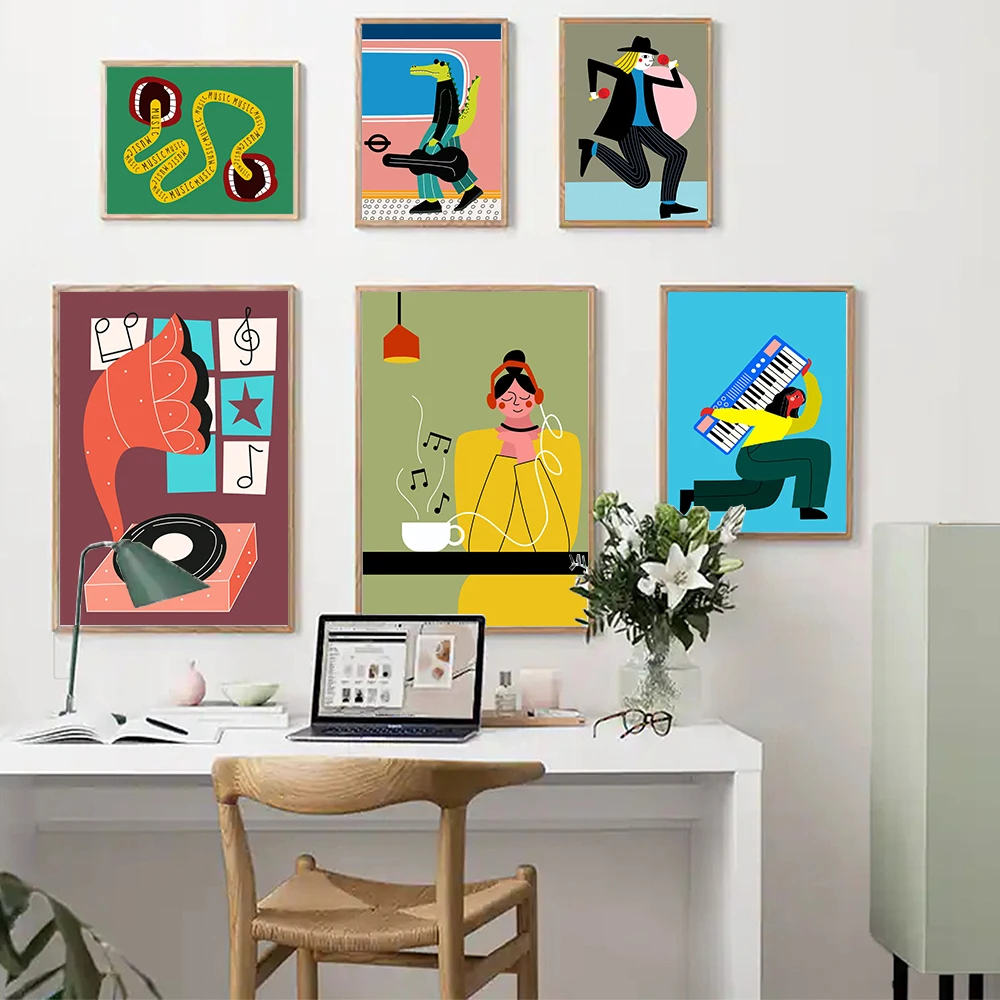 Забавный мультяшный пианино свисток девушка цветной плакат настенный художественный принт абстрактная игра гитара виниловый музыкальный Холст Картина кровать домашний декор