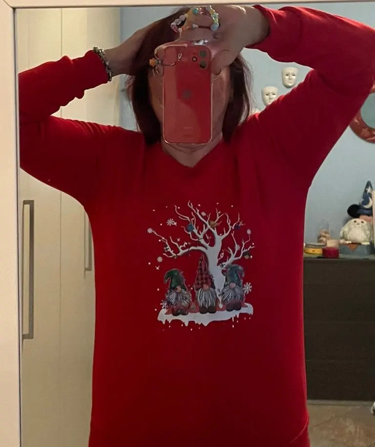 Милая Рождественская Толстовка, мягкий материал, определенно, на 2 размера больше.