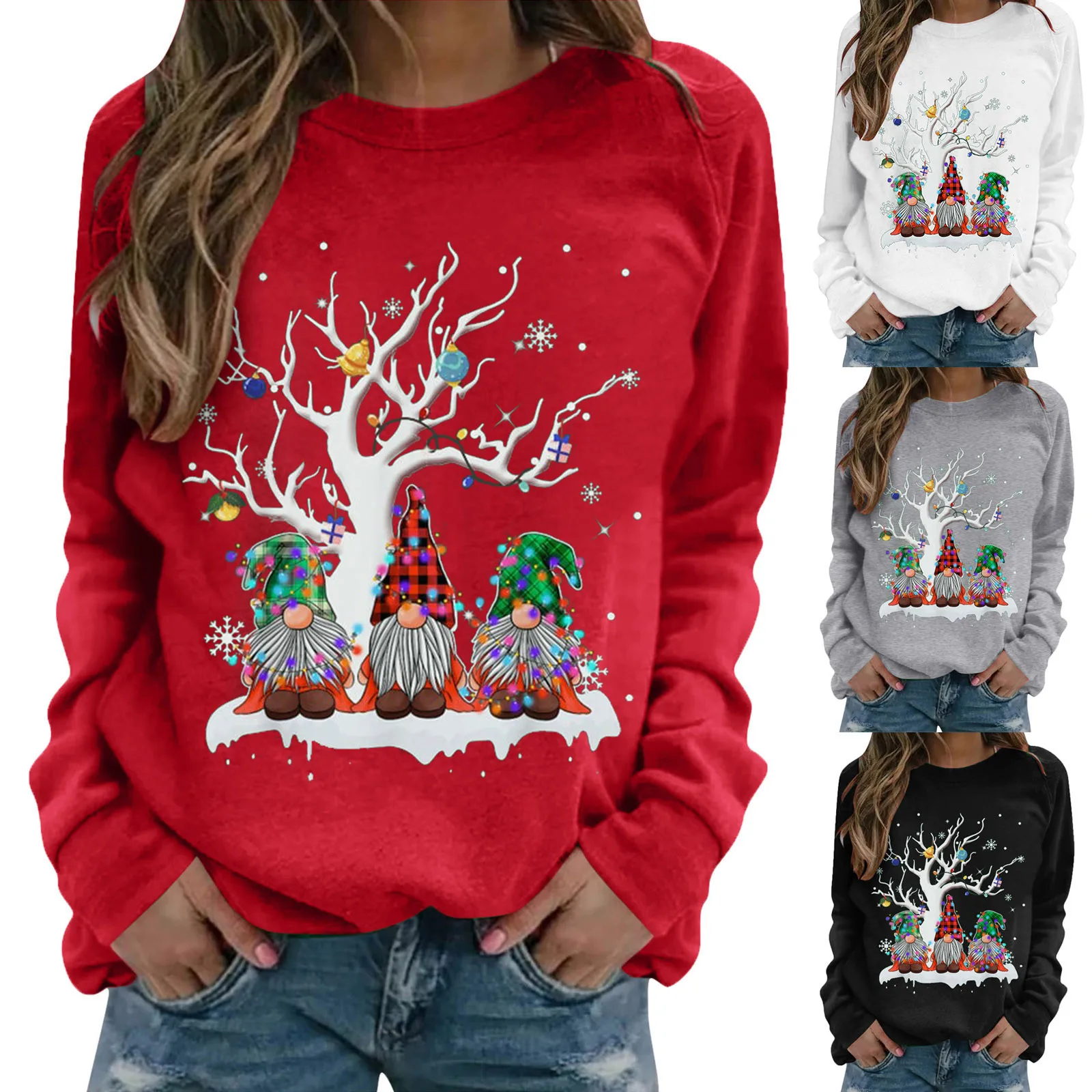 Женский свитшот с длинным рукавом и принтом на Рождество, 3XL