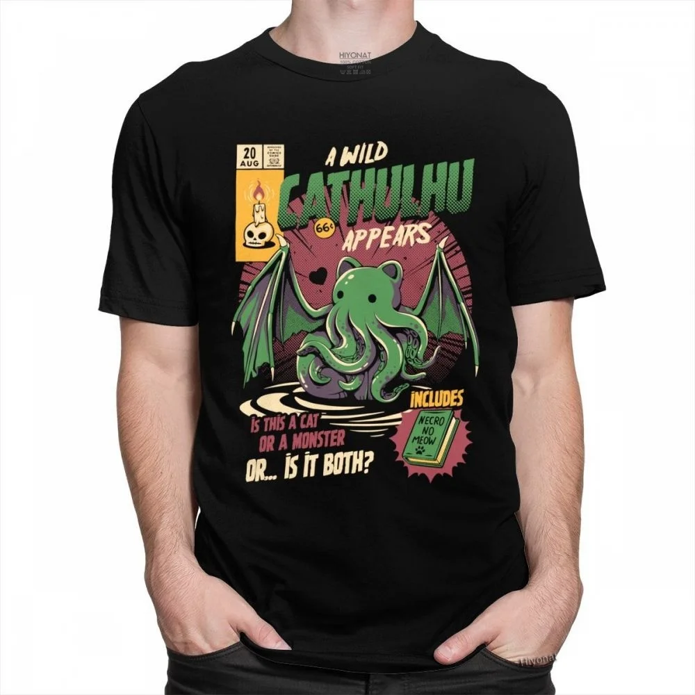 Классическая футболка A Wild Cthulhu, Мужская футболка с коротким рукавом для отдыха, с изображением кошки или фотографий кайдзю, футболка из фильма Lovecraft, хлопковая футболка, идея для подарка