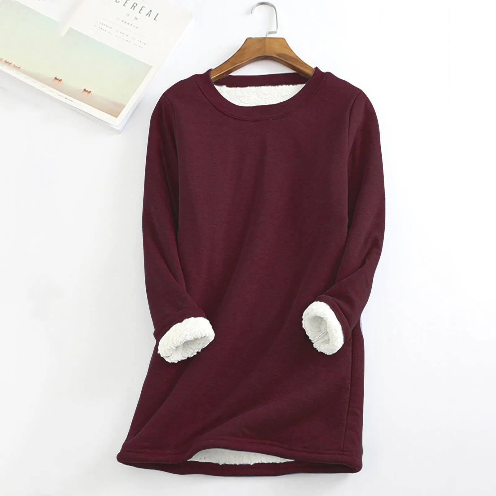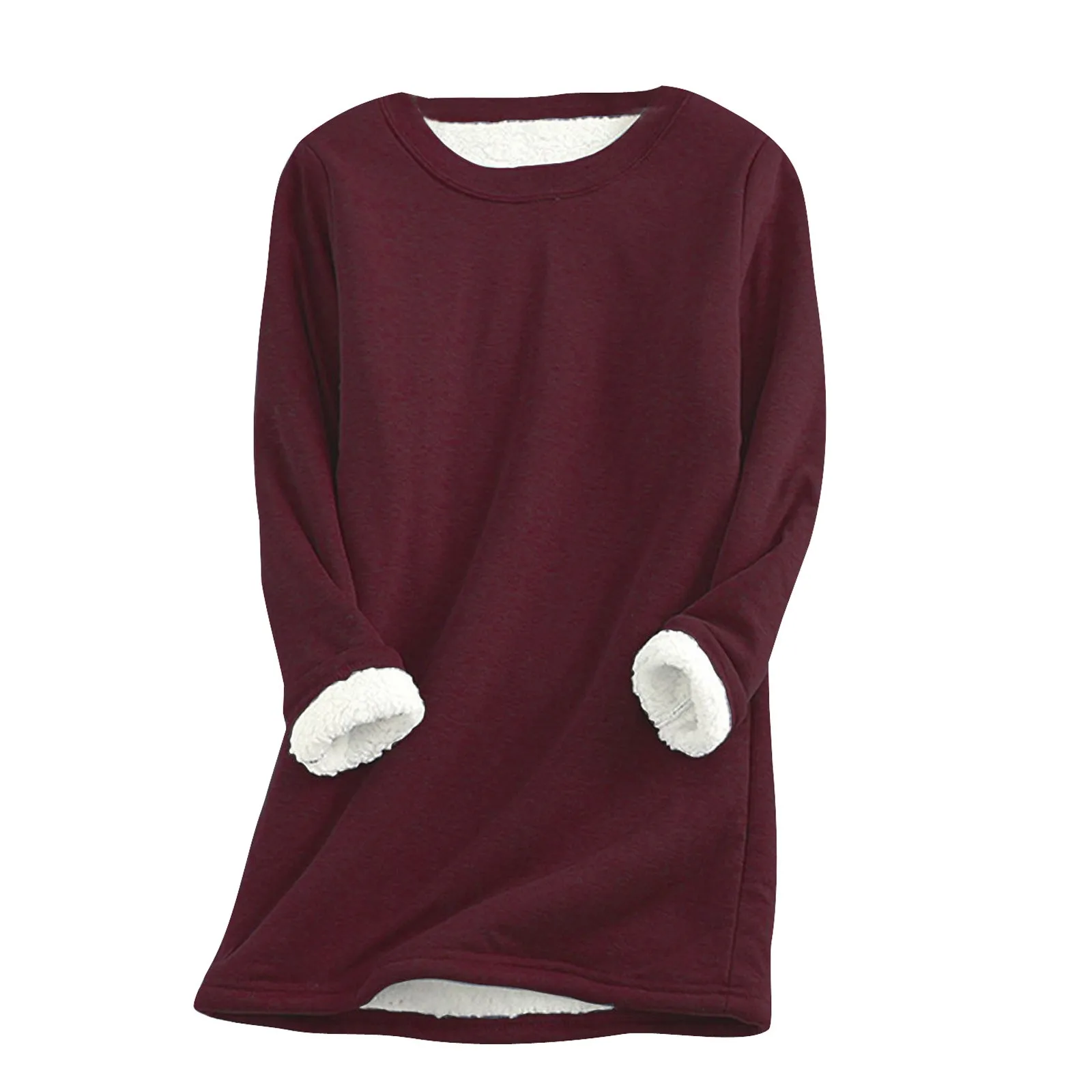 Женская толстовка из плотного флиса Casaul, зимний бархатный теплый топ с круглым вырезом