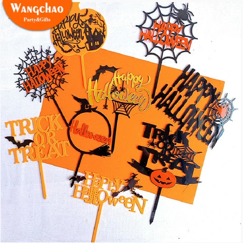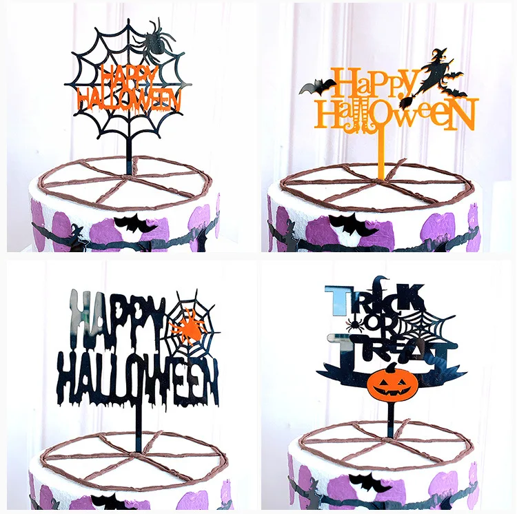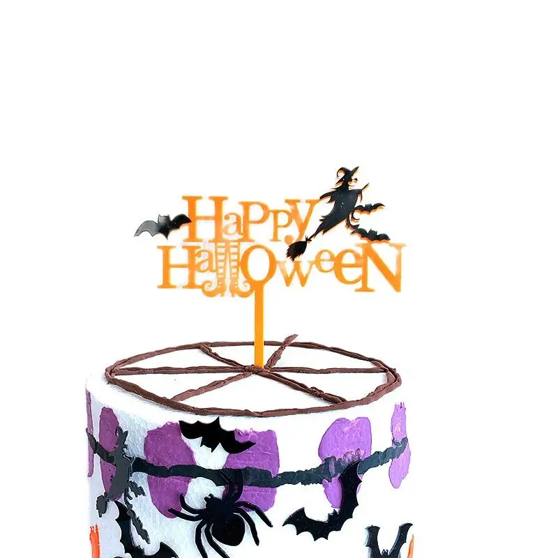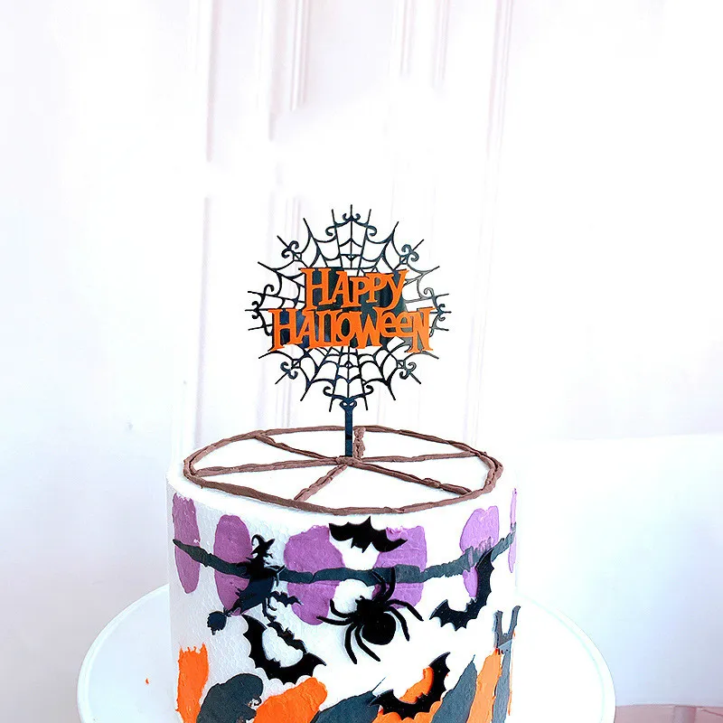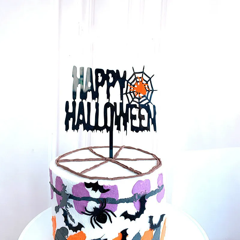 Новинка, акриловый Топпер для торта на Хэллоуин, летучая мышь, паутина, тыква, украшения для торта, выпечки