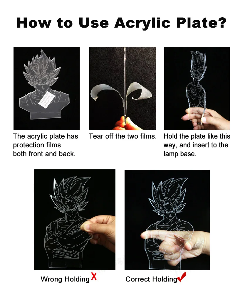 * Перед использованием снимите защитную пленку с обеих сторон.* Чтобы не оставлять отпечатков пальцев на поверхности акриловой панели, просто удерживайте доску на кромке пальцами.* Более темный, более красивый вид.