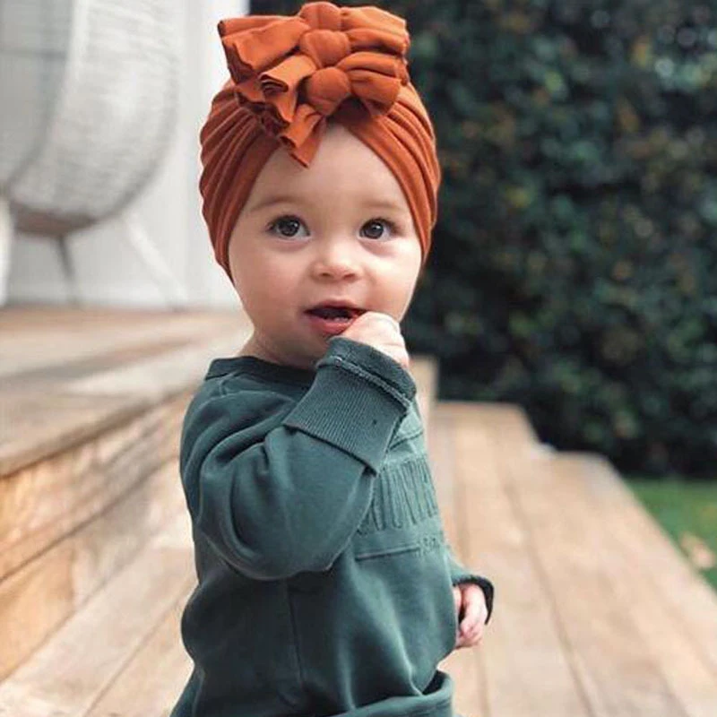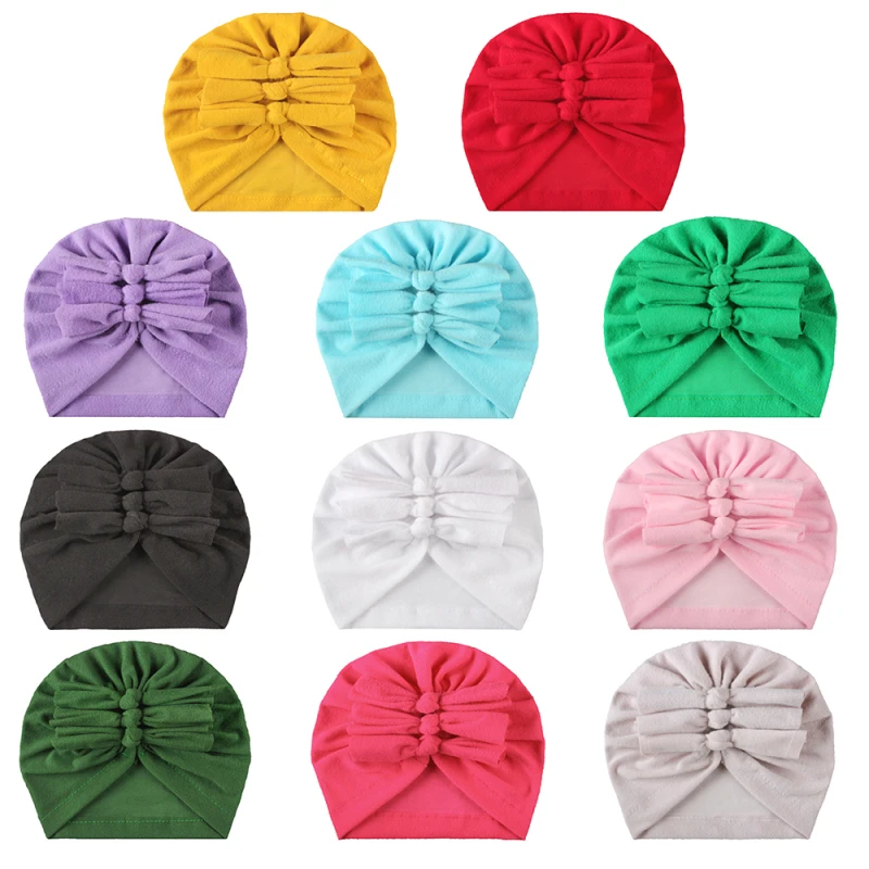 Детская повязка на голову, шапка с бантом, хлопковый Эластичный Тюрбан с принтом, повязка на голову для младенцев, облегающая шапка, головной убор для девочек, детские аксессуары для волос