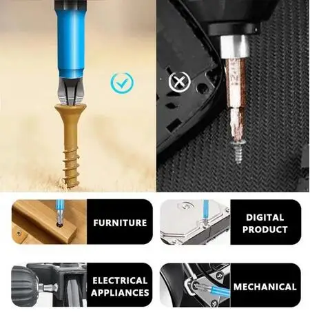 Сильная Магнитная головка-отвертка имеет сильный магнетизм, она может легко и быстро поймать винт и зафиксировать его, чтобы предотвратить скольжение сверла и повысить эффективность работы.