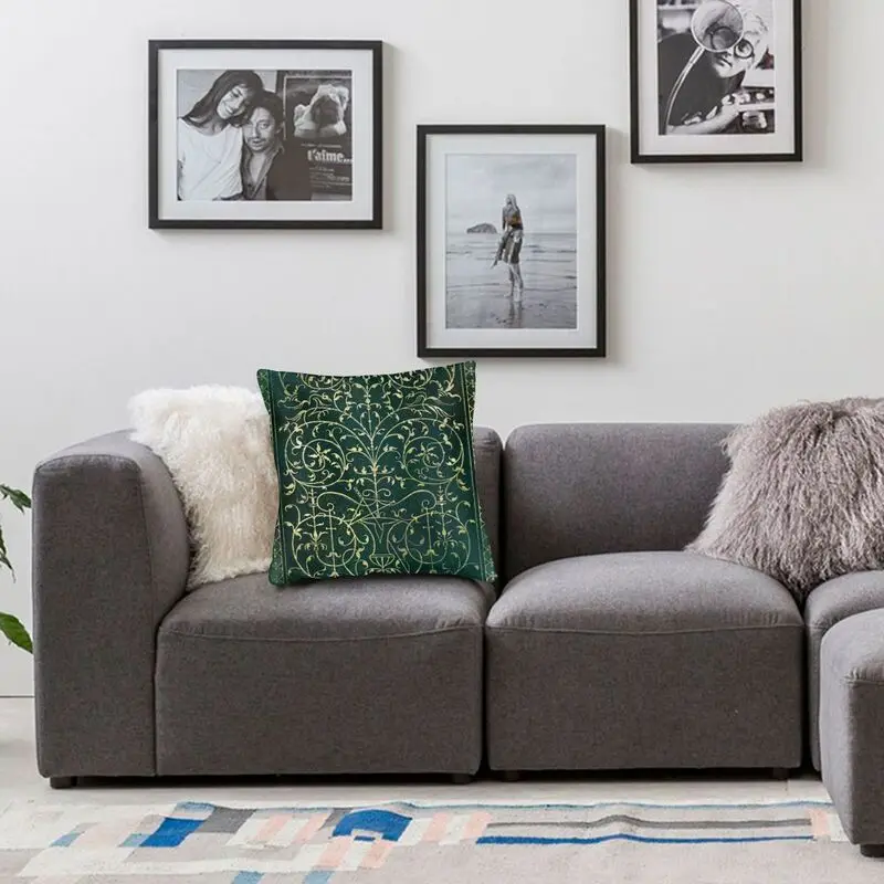 Бархатный зеленый мрамор с украшенной квадратной декоративной подуш...