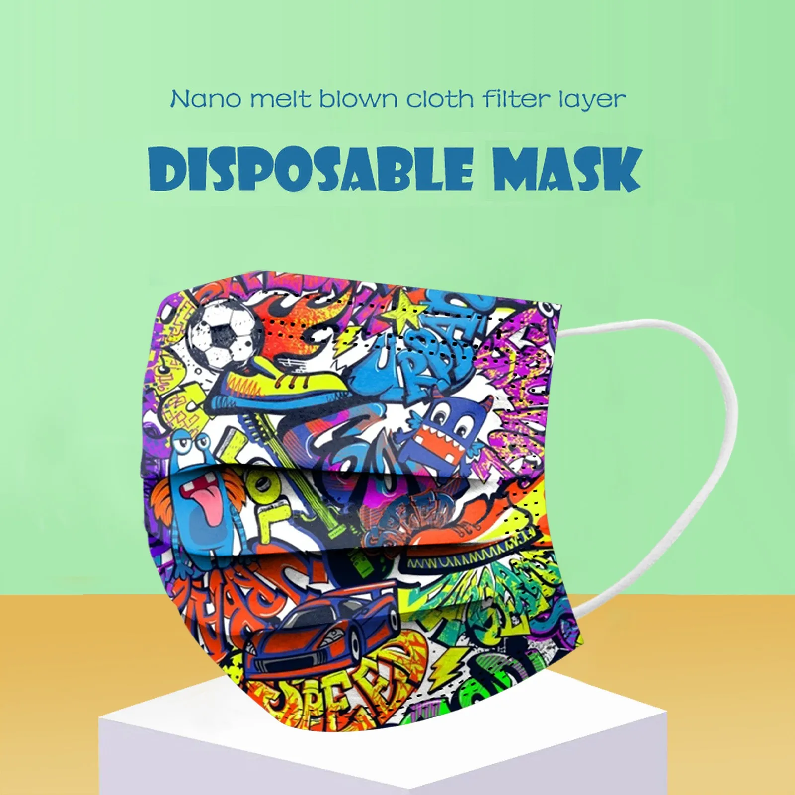 50 шт., одноразовые маски для лица с принтом в виде граффити