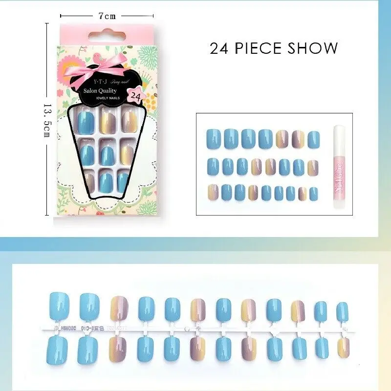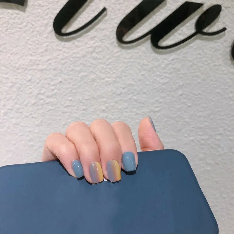 GAM-BELLE 24 шт. желтый фиолетовый градиент поддельные ногти квадратный освежающий синий пресс на ногти Декор