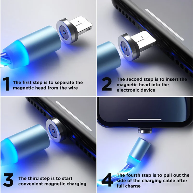 Зарядный кабель Micro USB Type-C, светодиодный, светящийся, магнитн...