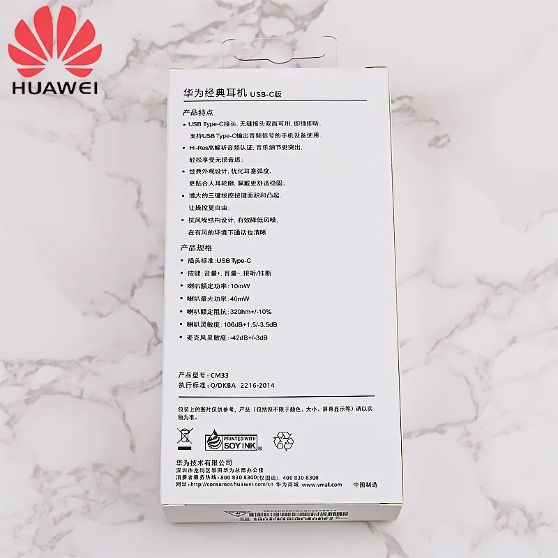 Бренд: HUAWEIНомер модели: CM33Цвет: белый, черныйРазъем: USB Type CКачество звука: Hi-ResДлина шнура: 1,1 мСопротивление: 32Ω +/-10%Материал: ПК премиум классаКонтроллер:* Микрофон* Громкость +* Объем-* Функциональная клавишаФункциональная клавиша:Нажмите один раз, чтобы ответить на вызов;Длительное нажатие, чтобы отклонить вызов;Нажмите один раз, чтобы воспроизвести/Приостановить музыку;Нажмите три раза на предыдущую музыку;Дважды нажмите на следующую музыку.