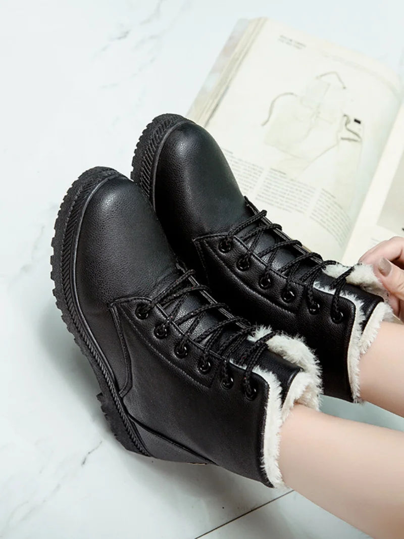 Женские зимние ботинки, зимняя обувь на шнуровке, кожаная обувь, же...