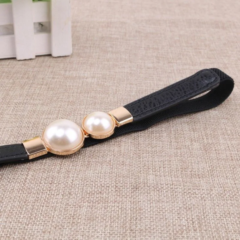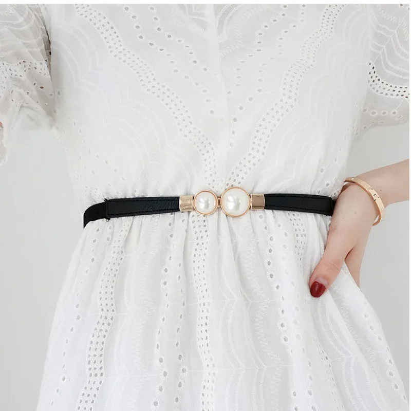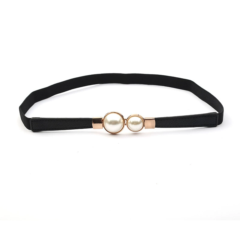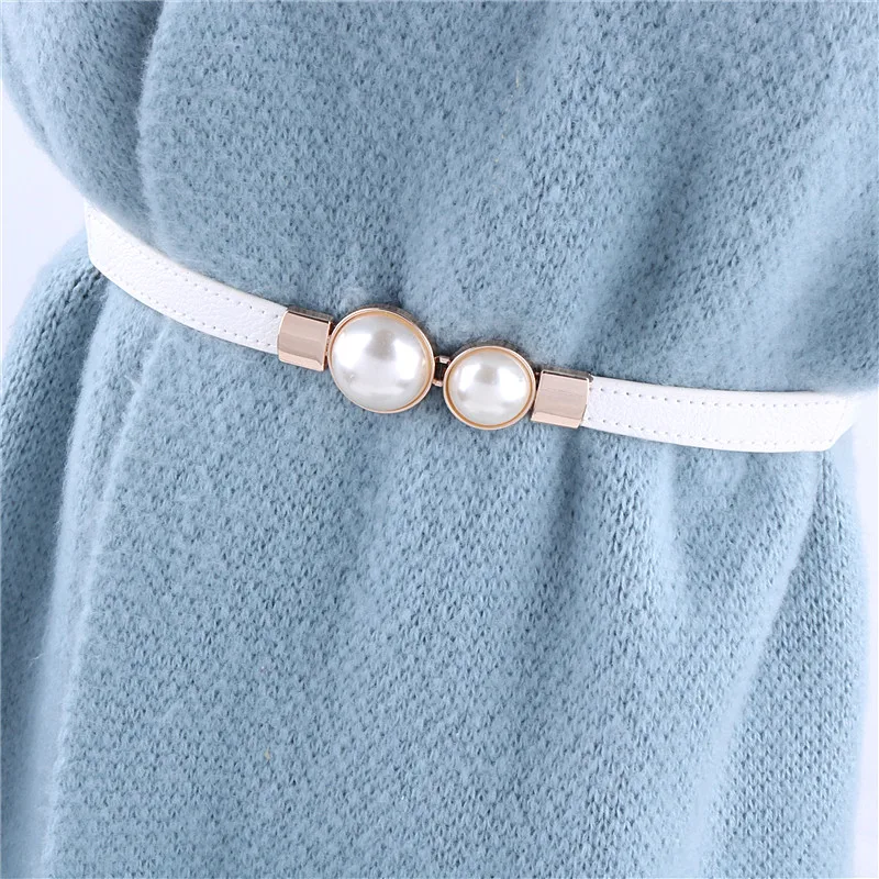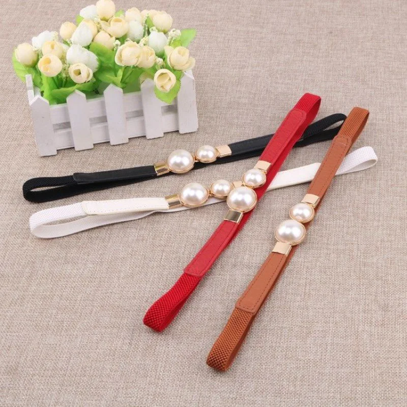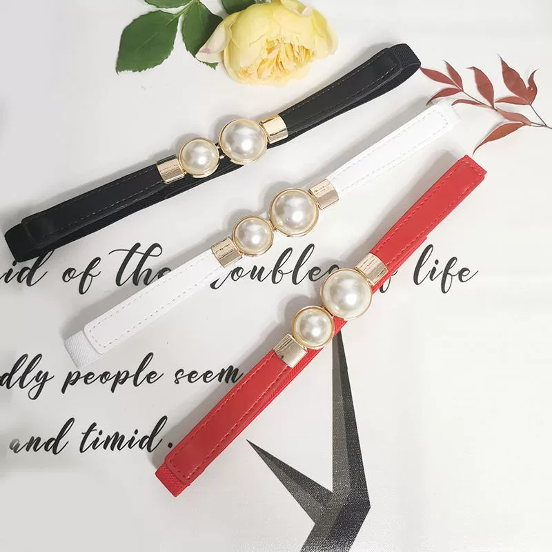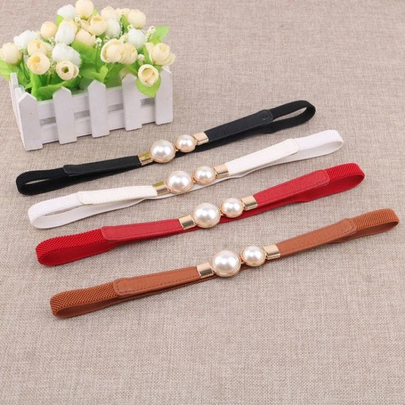 Ремень женский из искусственной кожи, эластичный, с жемчугом, черный, белый, красный, пояс для девочки