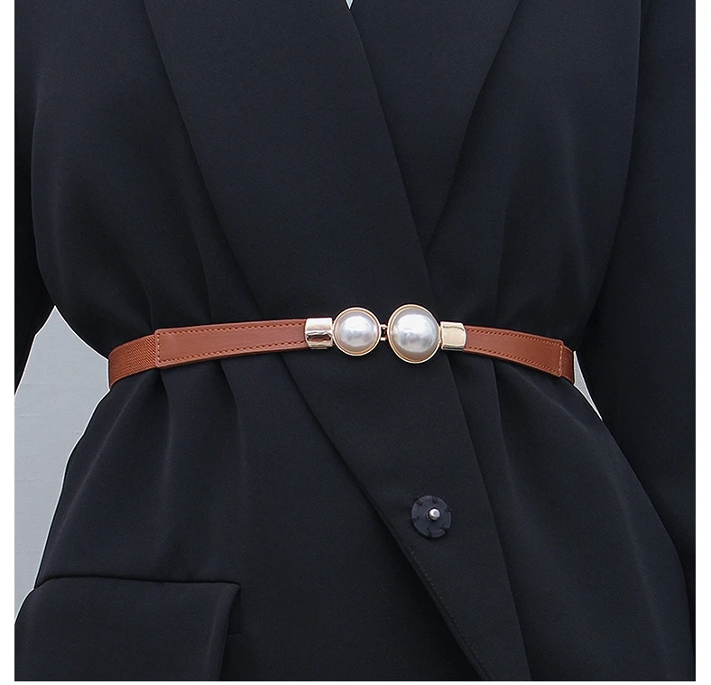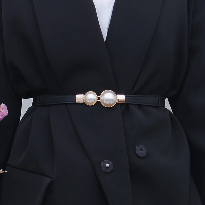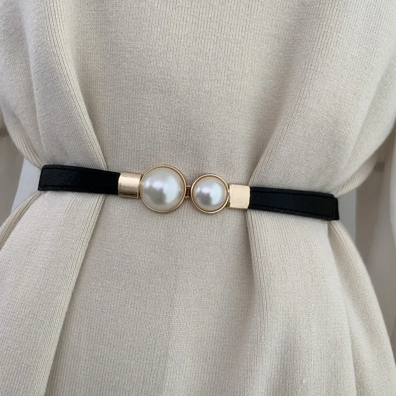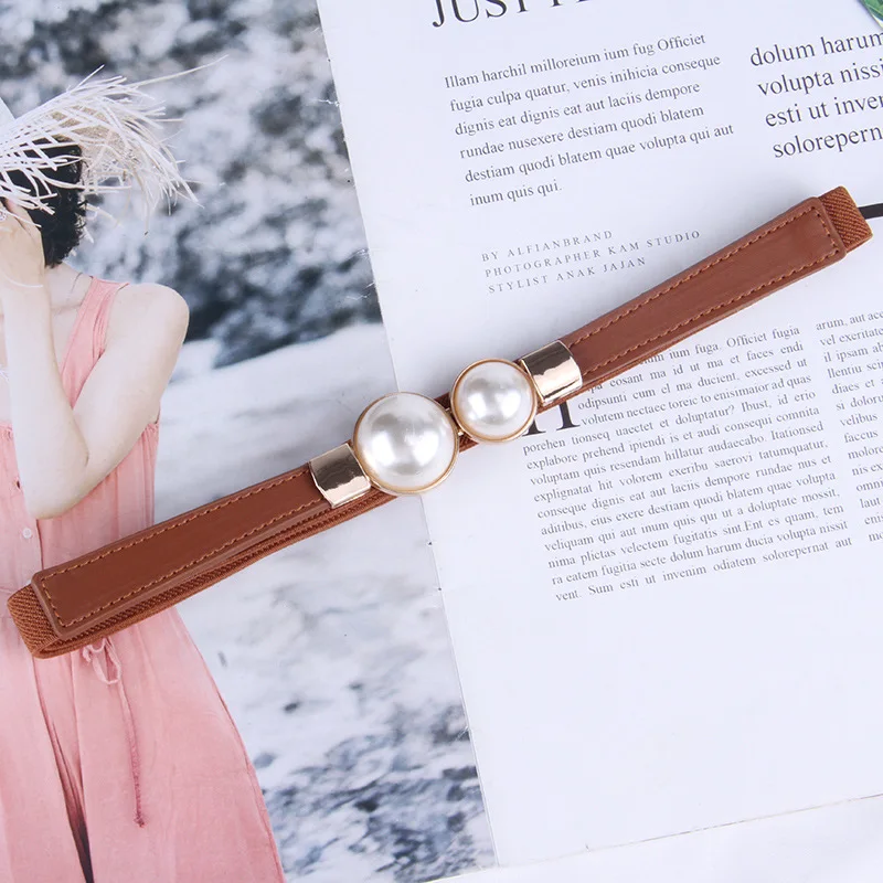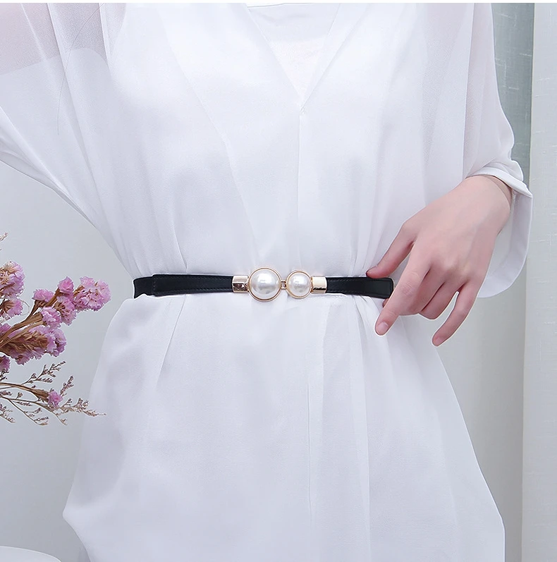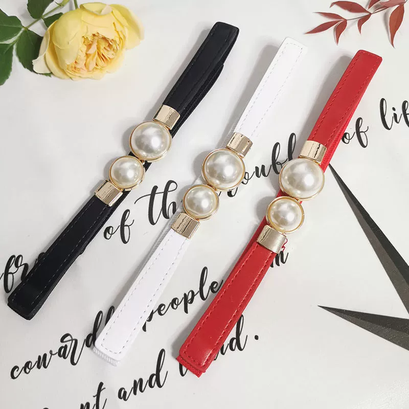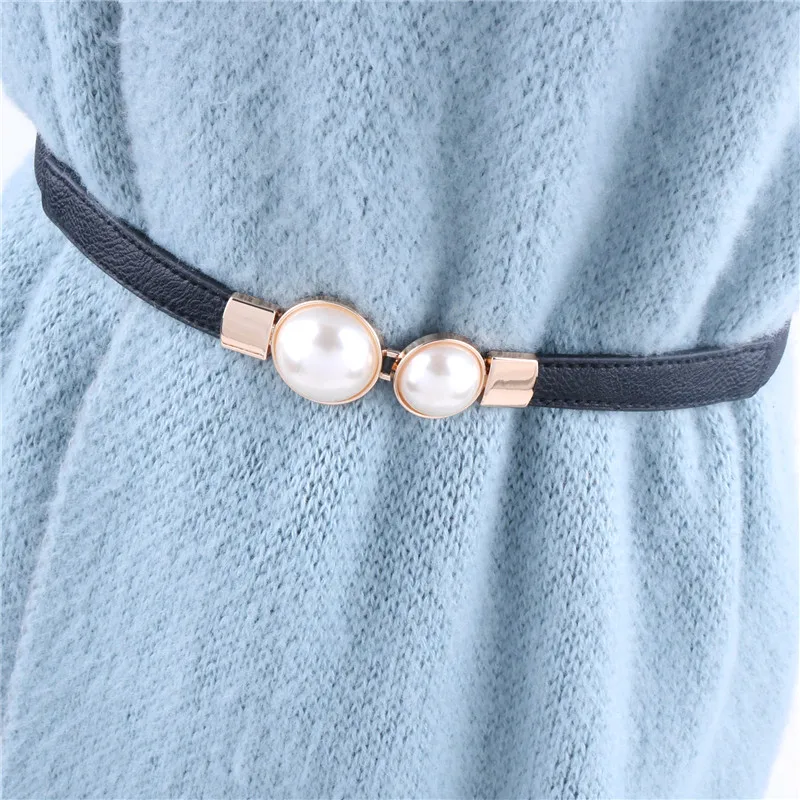 Ремень женский из искусственной кожи, эластичный, с жемчугом, черный, белый, красный, пояс для девочки