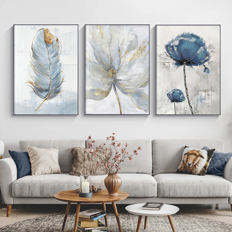 картины для интерьера декор комнаты Скандинавский настенный постер с изображением цветов и перьев, абстрактная живопись, украшение для гостиной, скандинавский Декор для дома