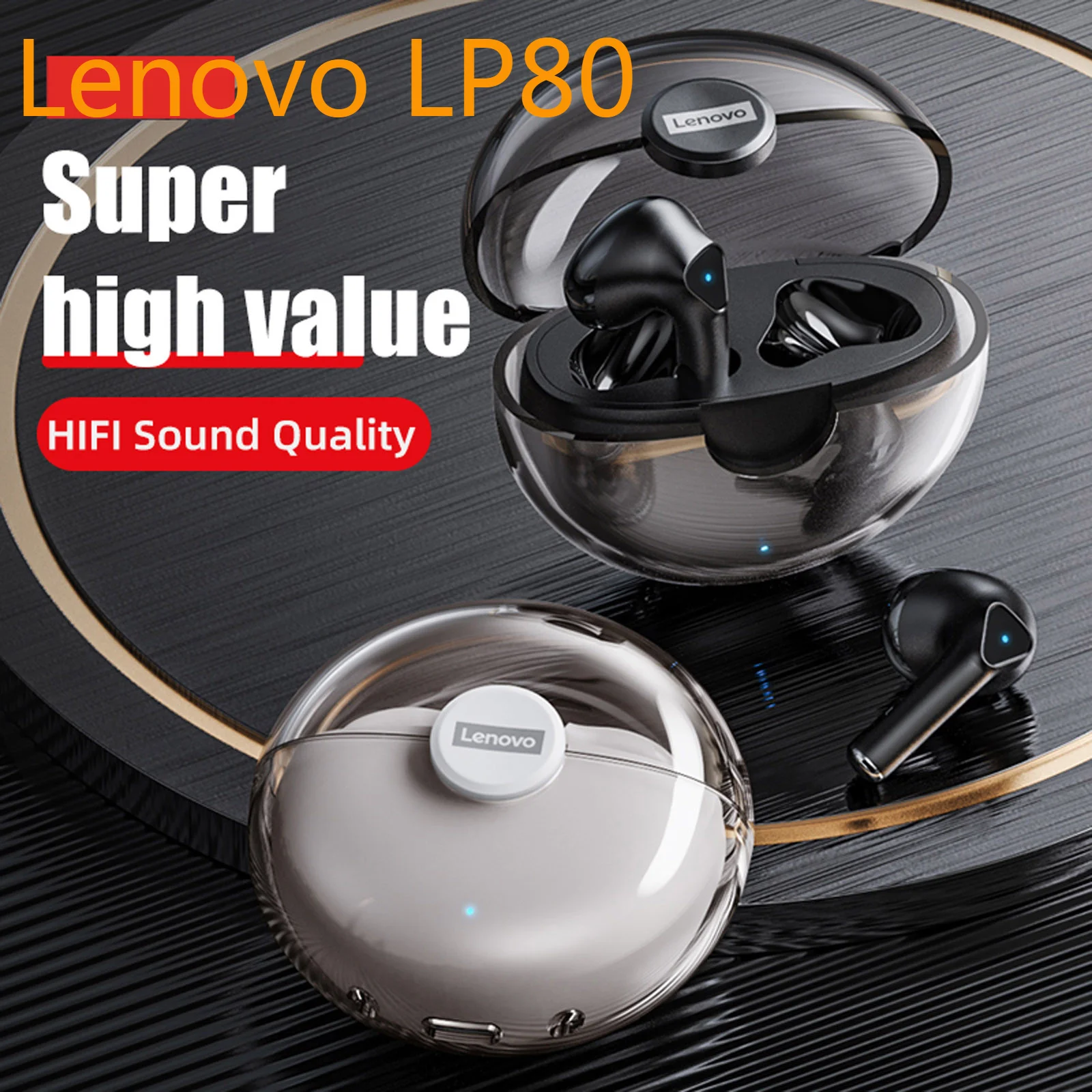 Беспроводные Bluetooth-наушники Lenovo LP80, IPX5, TWS Bluetooth, спортивные наушники, наушники с глубокими басами, гарнитура с зарядным чехлом, 2021
