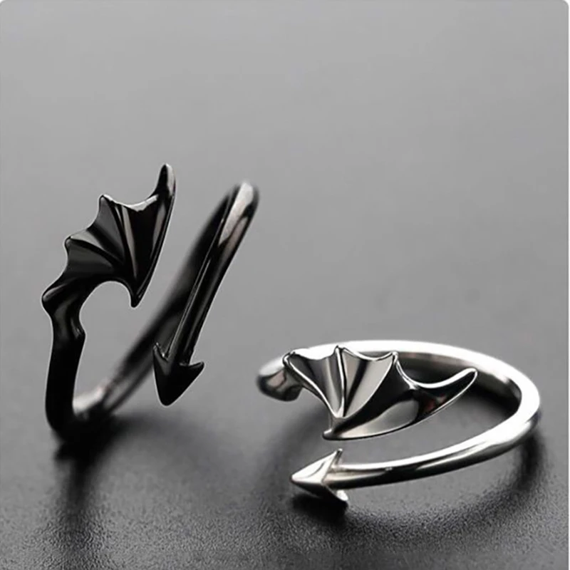 Модные мужские и женские открытые кольца с крыльями демонов, регули...