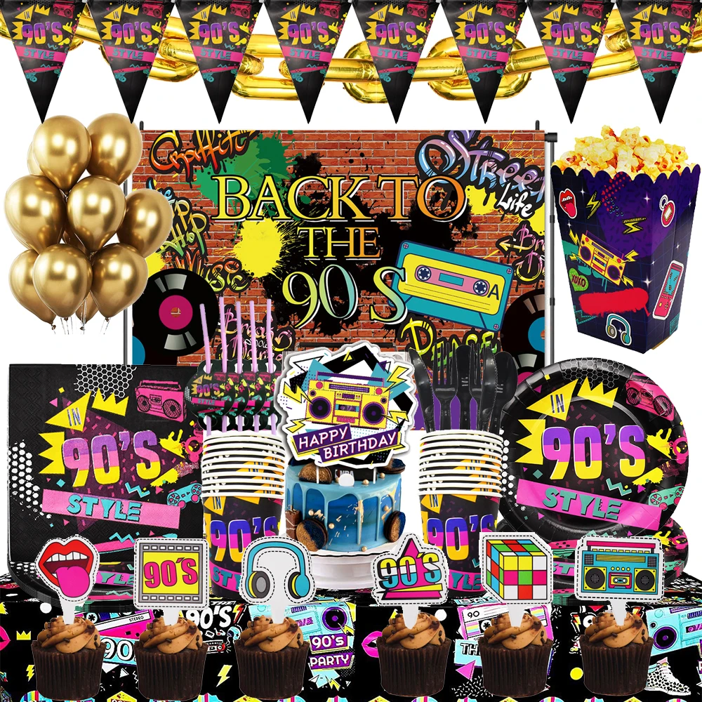 Набор одноразовой столовой посуды в стиле хип-хоп 90-вечерние годов, украшение для стола, ретро-соломинки для дискотеки, принадлежности для вечеринки в честь Дня Рождения