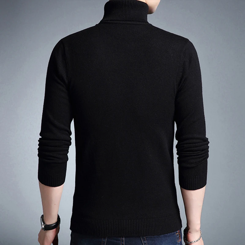Осенне-зимний теплый свитер, мужские повседневные свитера с высоким воротом, приталенный пуловер, Мужская трикотажная одежда, пуловеры, Топ