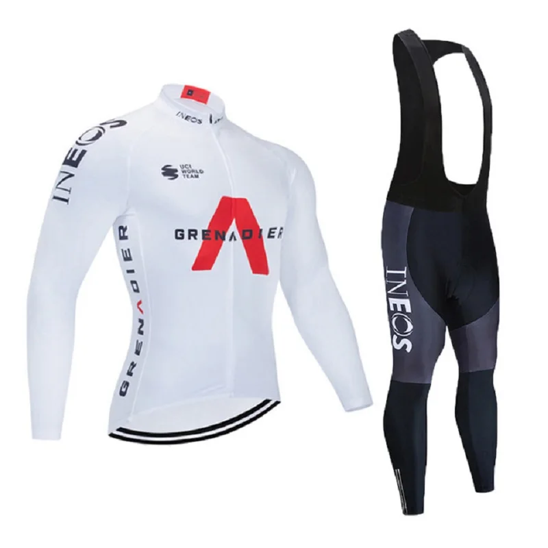 Комплект велосипедной одежды INEOS мужской, белая футболка с длинным рукавом и велосипедные штаны, одежда для велоспорта, летняя командная спортивная одежда