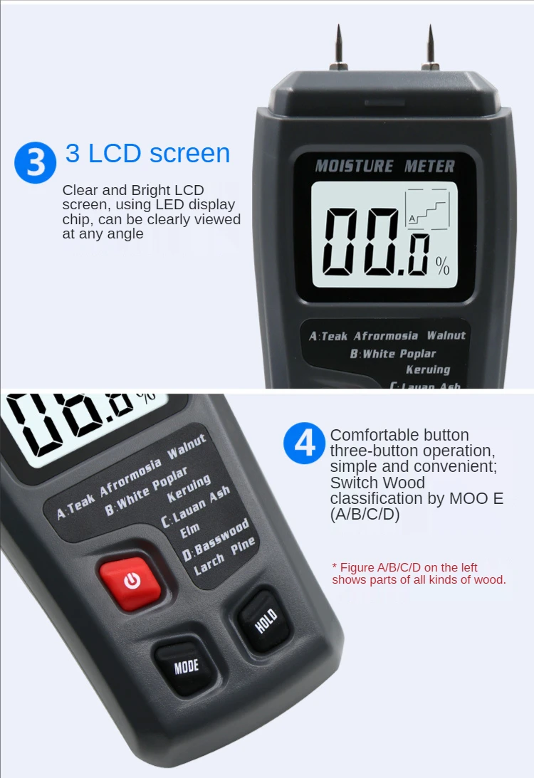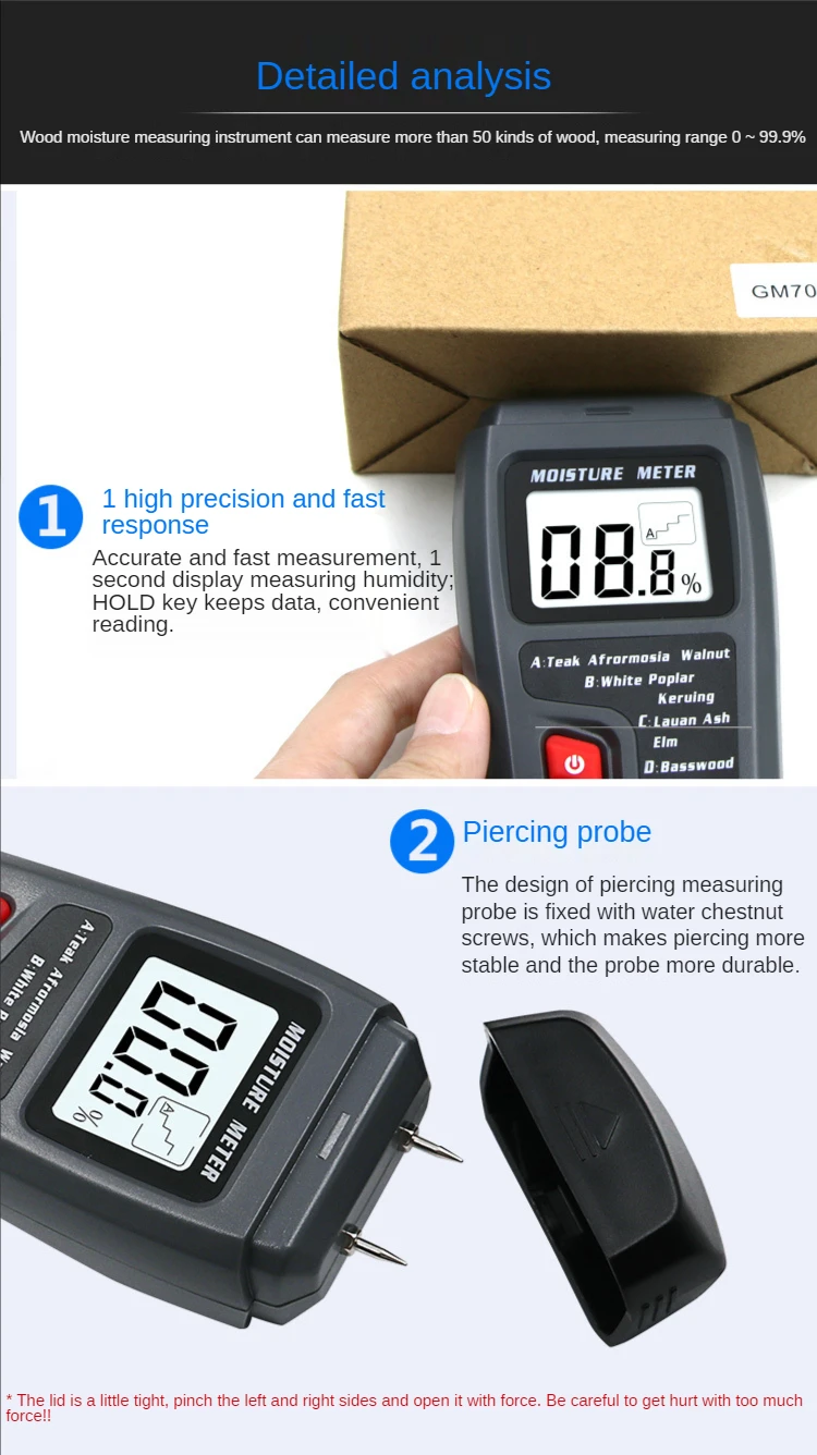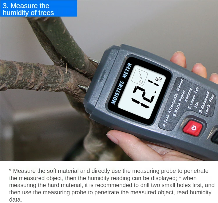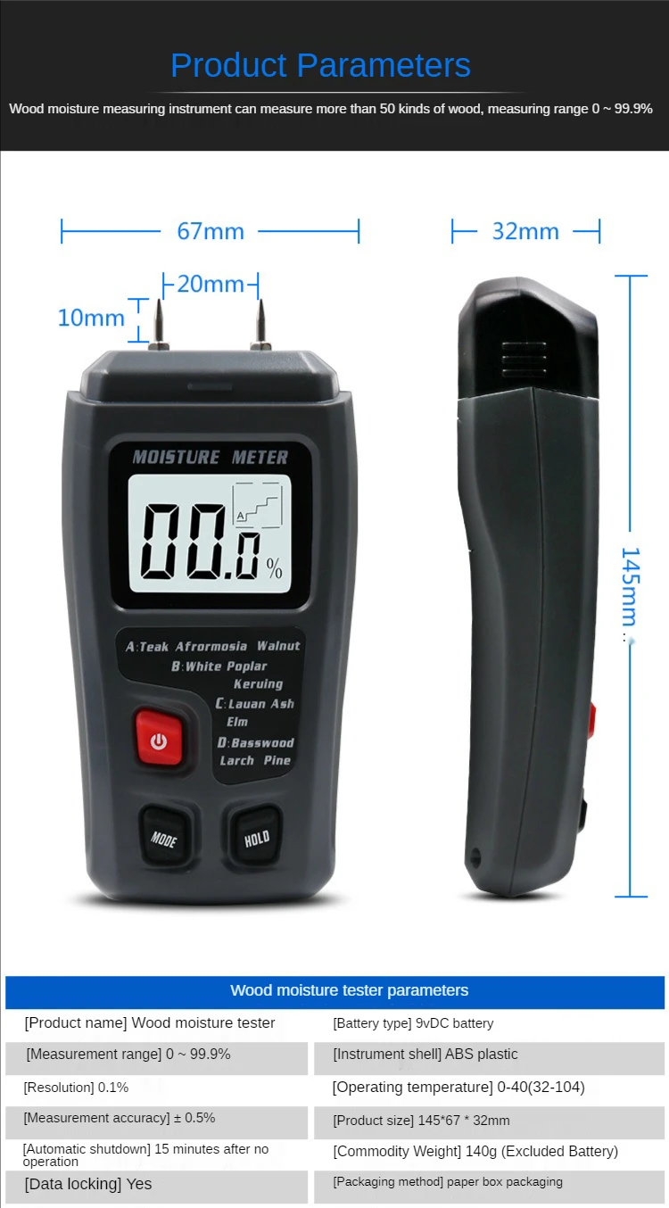 Цифровой измеритель влажности древесины, 0-99.9%, два контакта