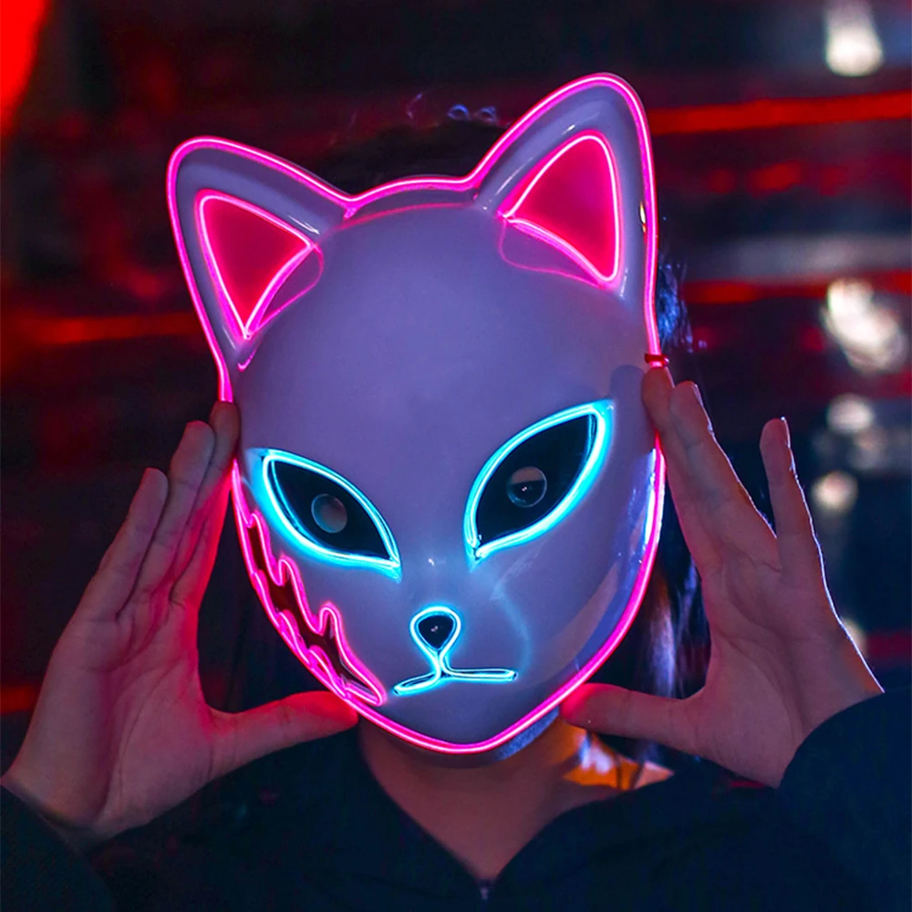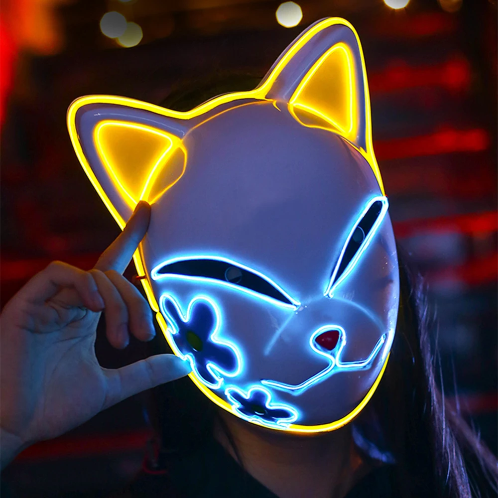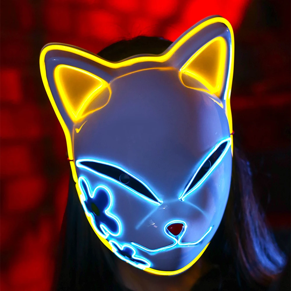 Светодиодный маска для Хэллоуина, украшение, аниме, рассекающий демонов, танджиро, сабито, маска, светящиеся аниме маски, косплей маскарадные маски, костюм