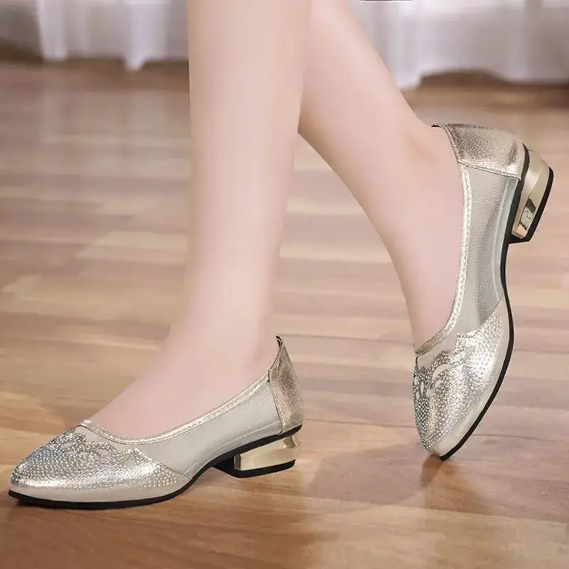 Cresfimixженские модные черные дышащие туфли с сеткой на квадратном каблуке; Zapatos De Mujer; Женские удобные туфли золотистого цвета на каблуке; Сезон осень; A9399
