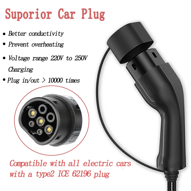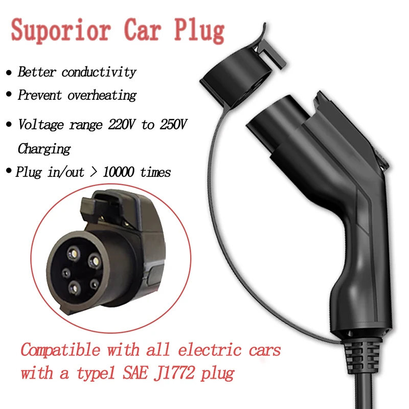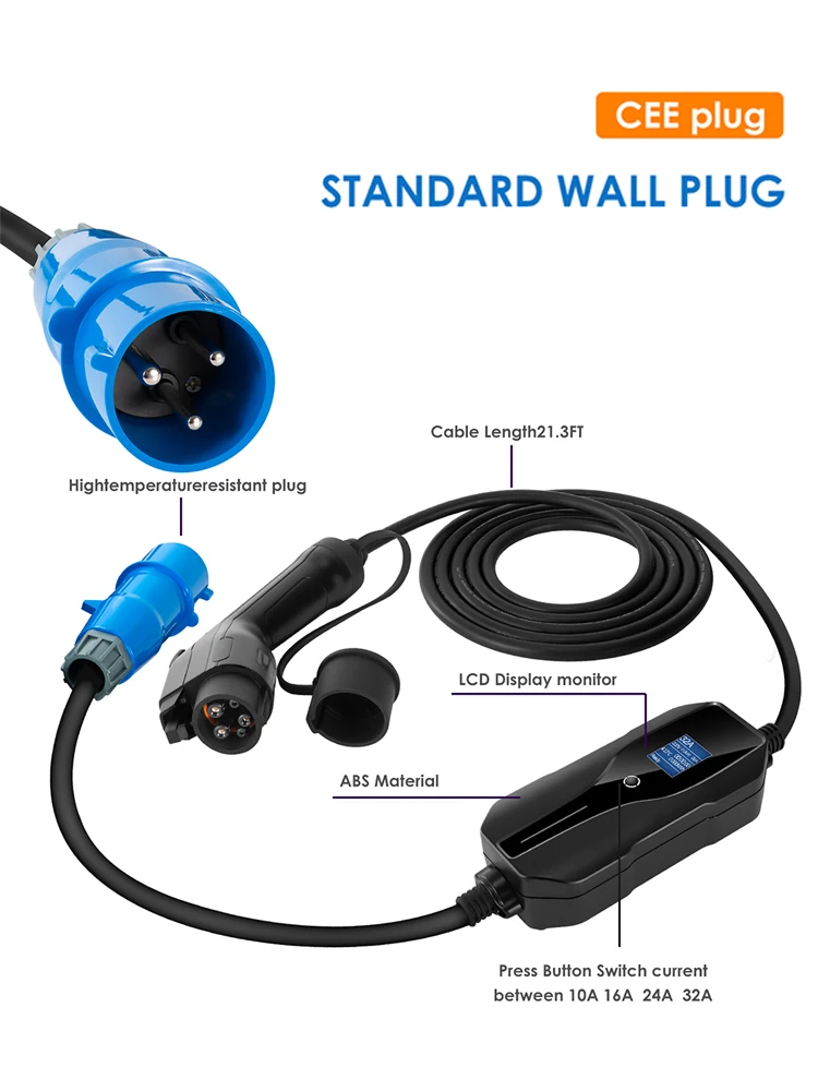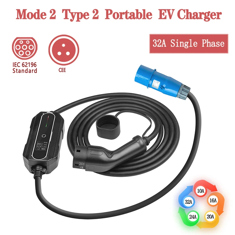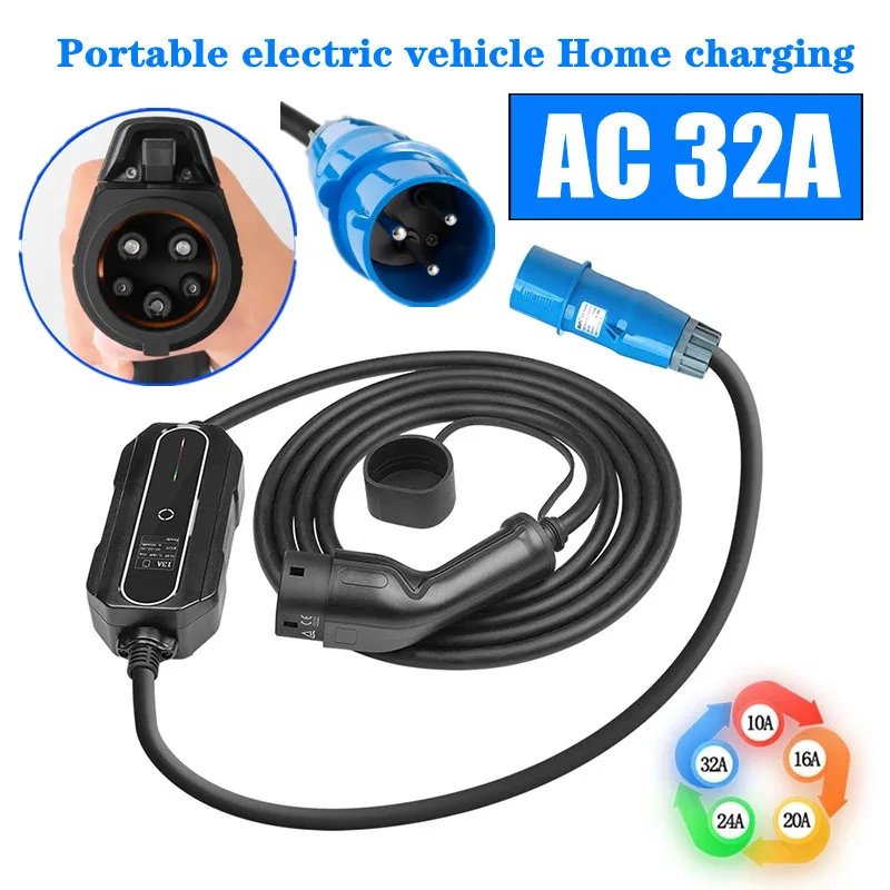 Штепсельная Вилка CEE 220-240 В, тип 1 и тип 2, автомобильный зарядный кабель, зарядное устройство для электромобиля, EV 32 А, портативный EVSE, IEC 62196 и SAE J1772
