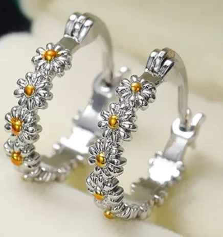 2021 Модные женские серьги-кольца цветок ромашки двухцветные белые золотые круглые висячие серьги обручальное кольцо ювелирные изделия лучшие подарки