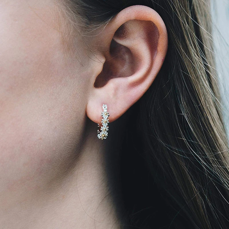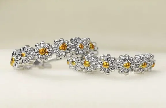 Модные женские серьги-кольца с маргаритками, двухцветные, белого и золотого цвета, круглые, висячие, свадебные, ювелирные изделия, лучшие подарки