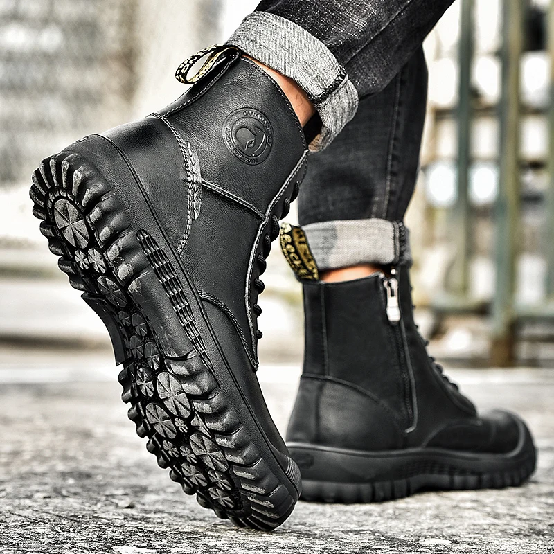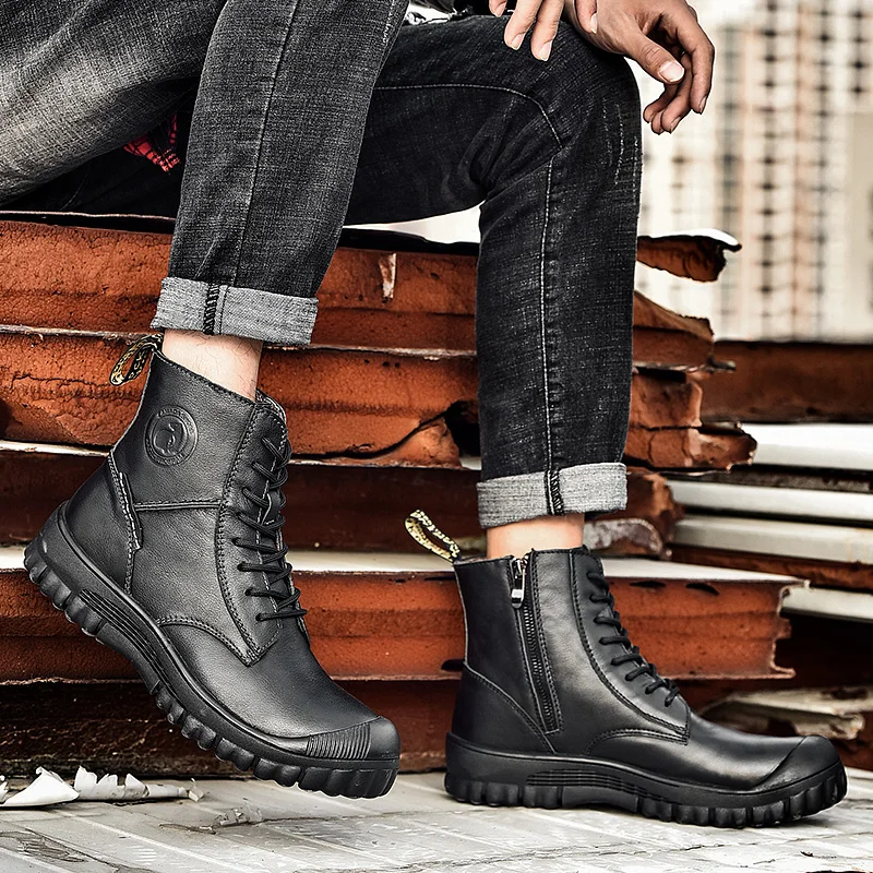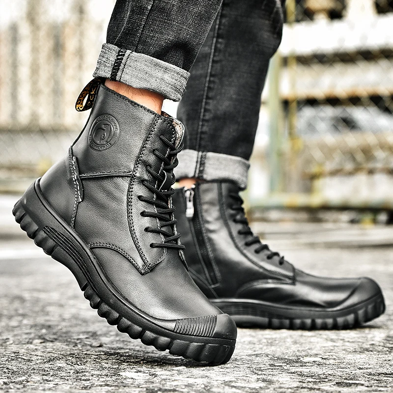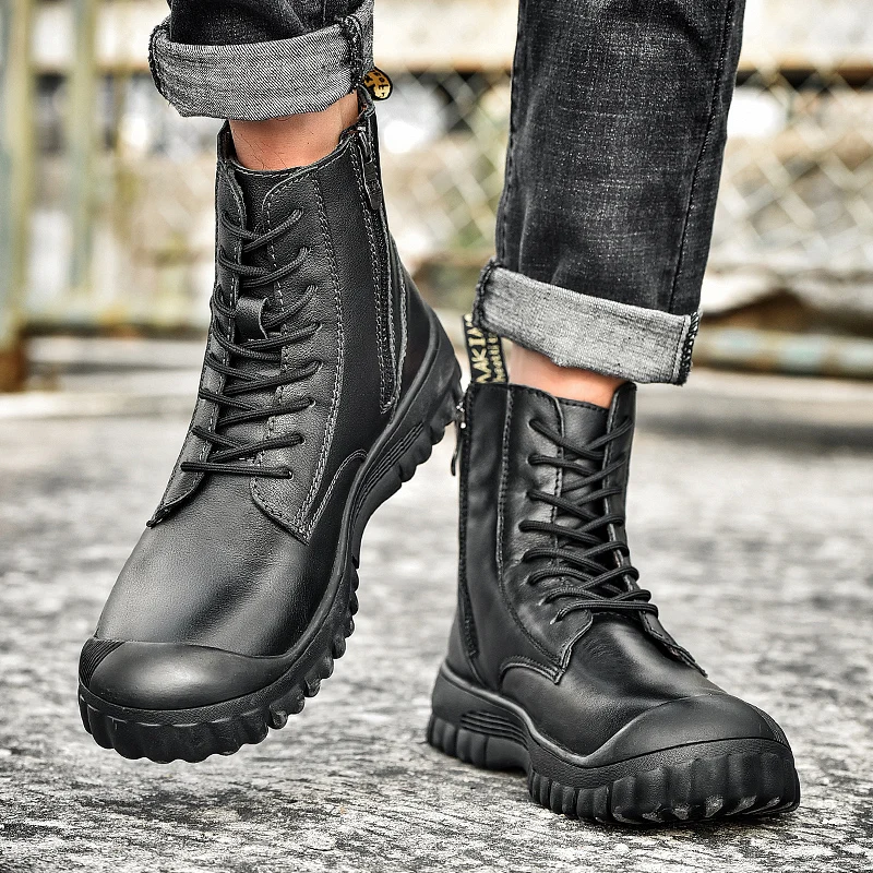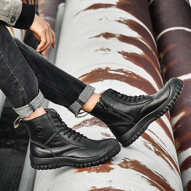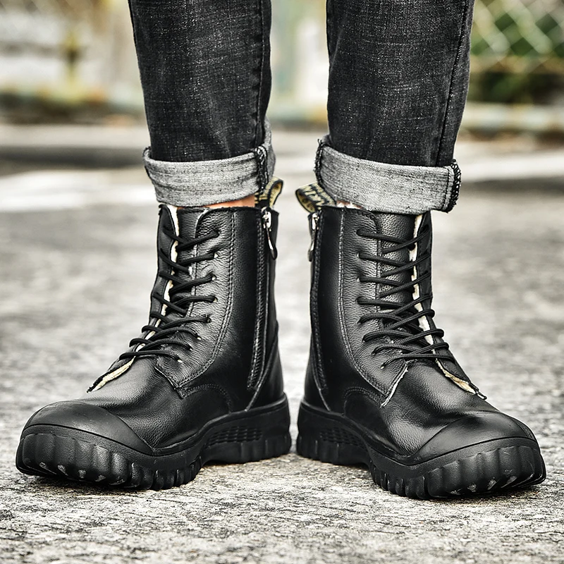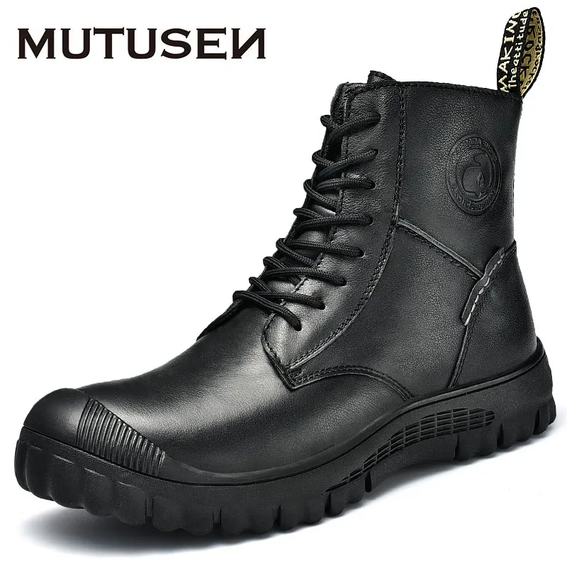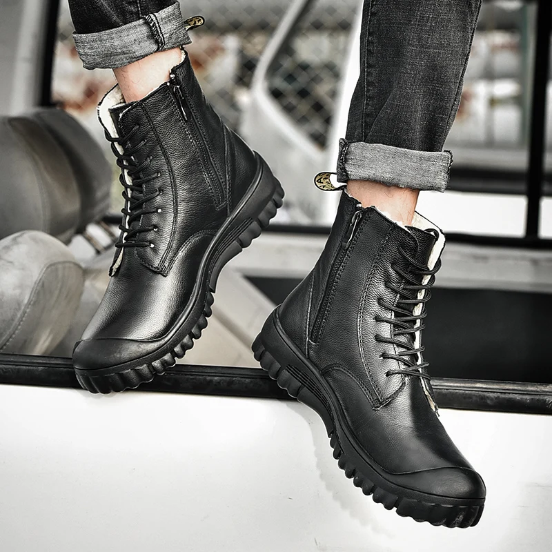 Мужские ботинки из натуральной кожи, Повседневная Уличная обувь с высоким берцем, теплый мех, модные мартинсы, Осень-зима