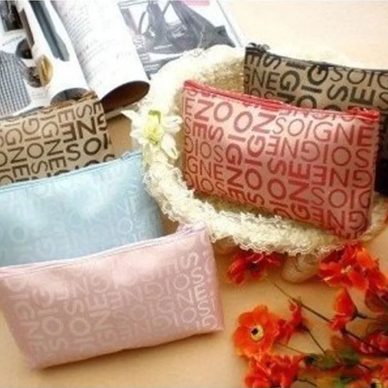 (Бесплатная доставка) простая и свежая косметичка, Повседневная горизонтальная квадратная сумка для хранения, жаккардовые сумки с надписью для ручной стирки