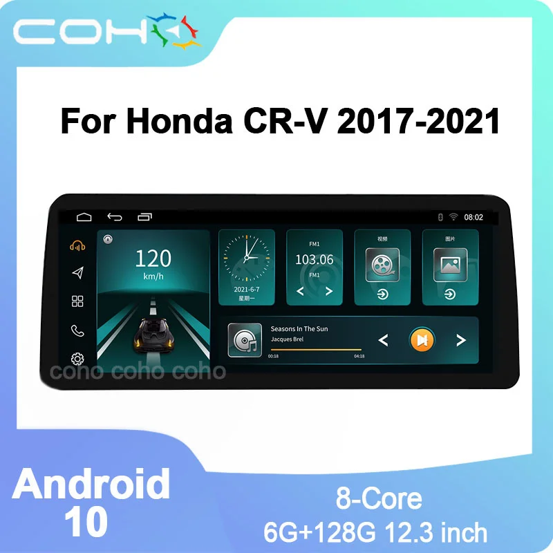 12,3 дюймовый COHO для Honda CR-V CRV 2017-2021 Android 10 Восьмиядерный 6 + 128G автомобильный мультимедийный плеер стерео радио Вентилятор охлаждения