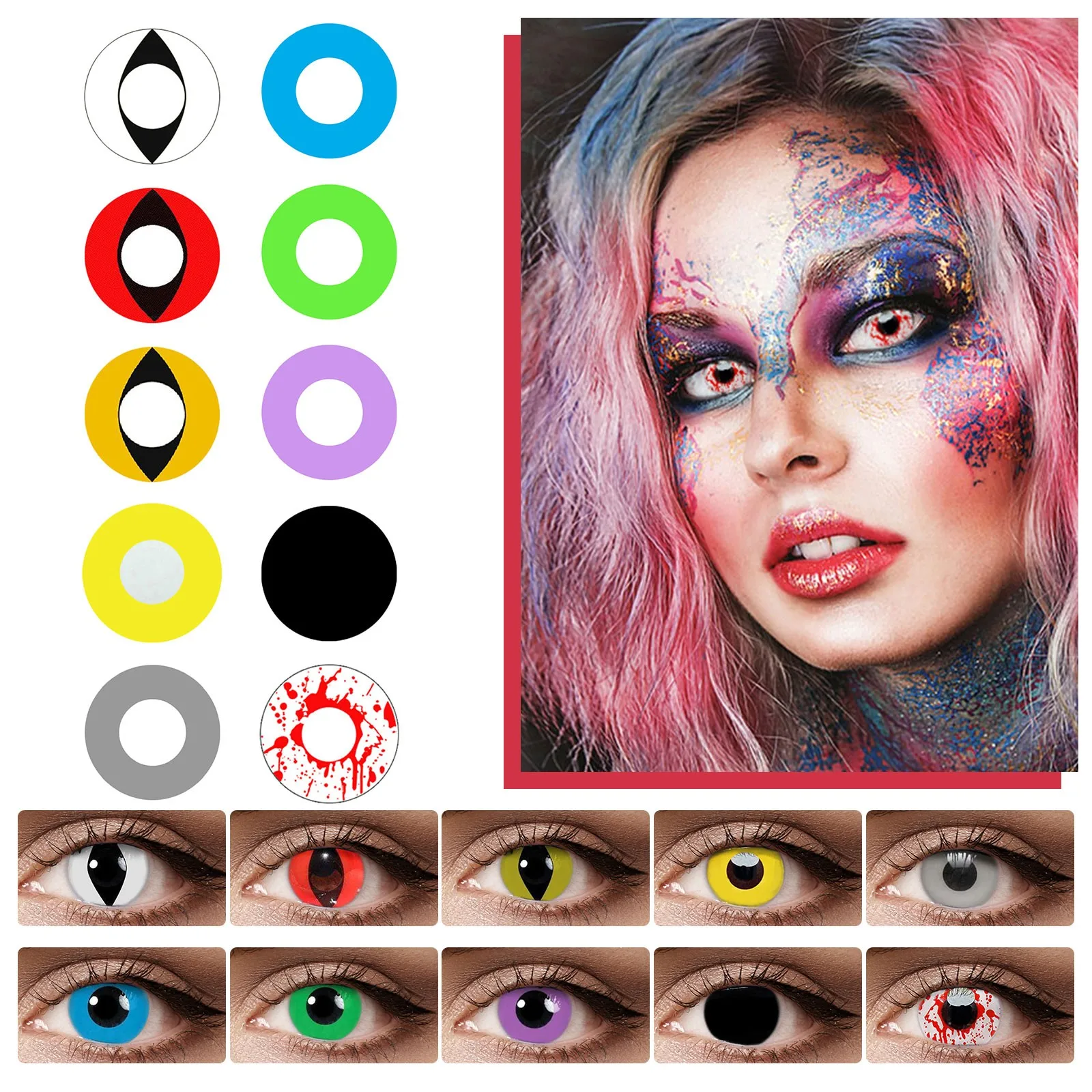 2 шт. контактные линзы для Хэллоуина Цветные глаза Маскарад Косплей Аниме контактные линзы для женского макияжа белые черные красные линзы