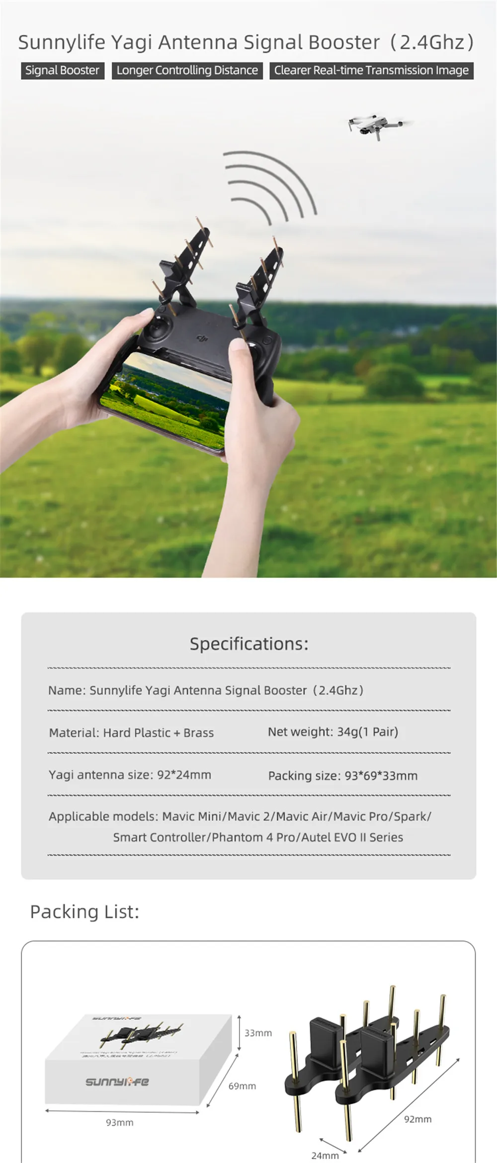 Усилитель сигнала Yagi 2,4 ГГц для DJI Mavic MiniMini SEMavic 2Air ProPhantom 4 ProAutel EVO II