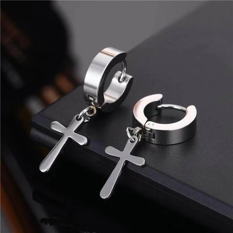 Серьги-гвоздики в стиле хип-хоп с крестом из нержавеющей стали
