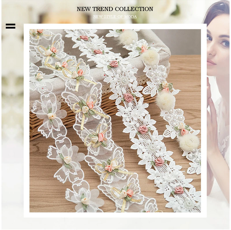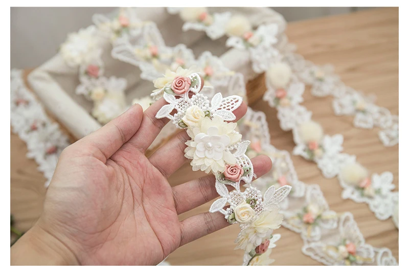 Кружевная лента с свадебное платье с жемчугом лентами для рукоделия, аксессуары для шитья, рукоделия, Аппликации, 3D Цветочная вышивка, 2 ярда