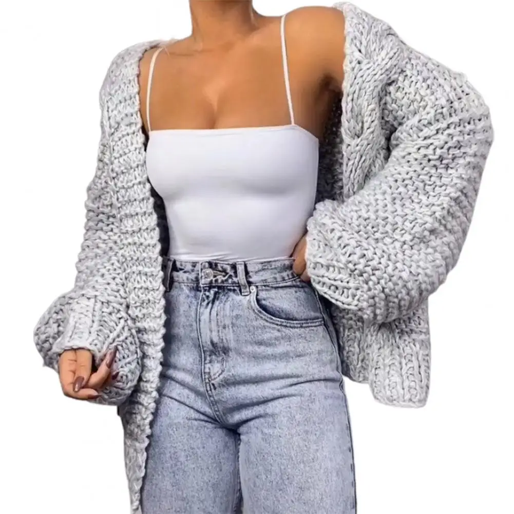 Женский однотонный кардиган, Свободный вязаный кардиган с рукавами-фонариками, 4 цвета, для повседневной носки