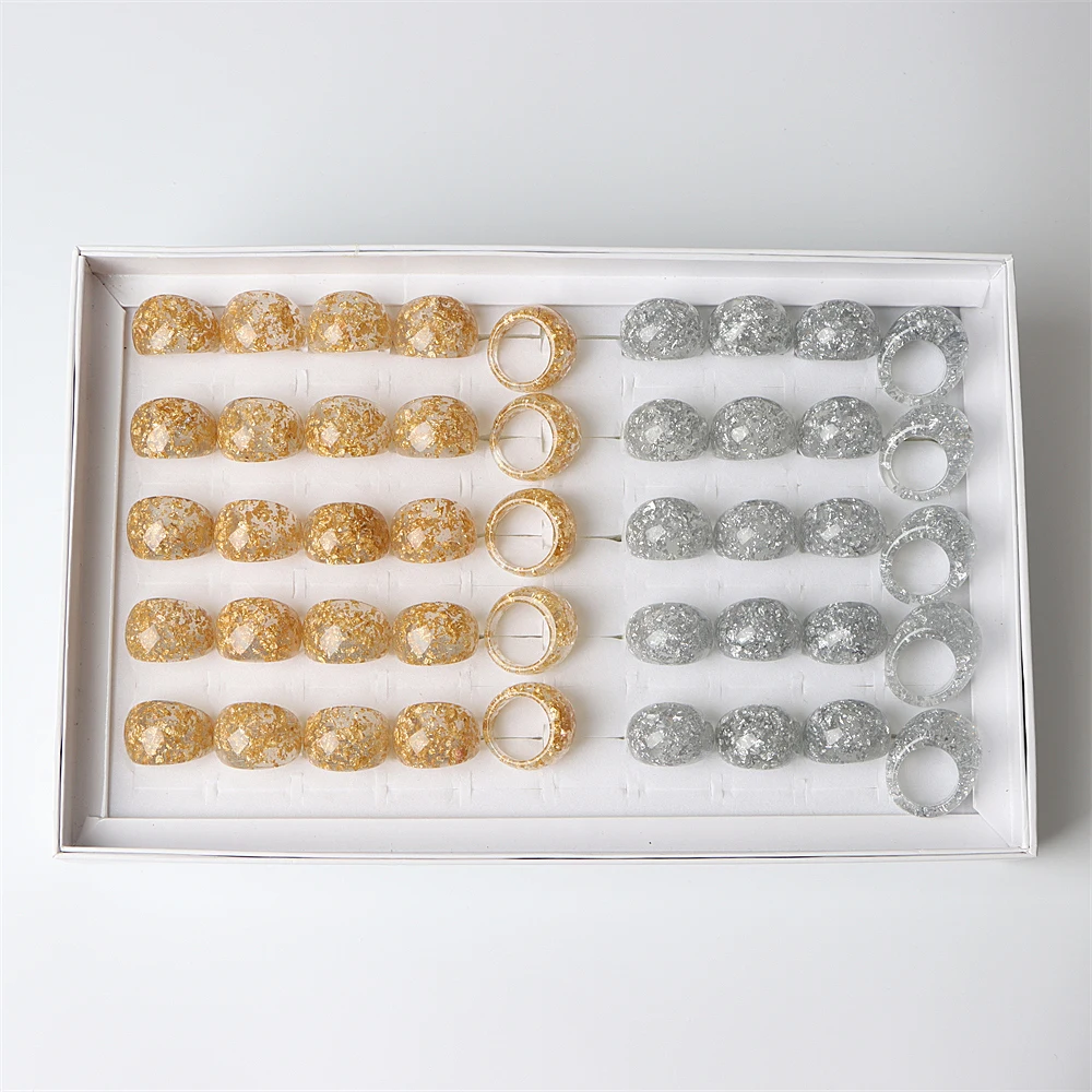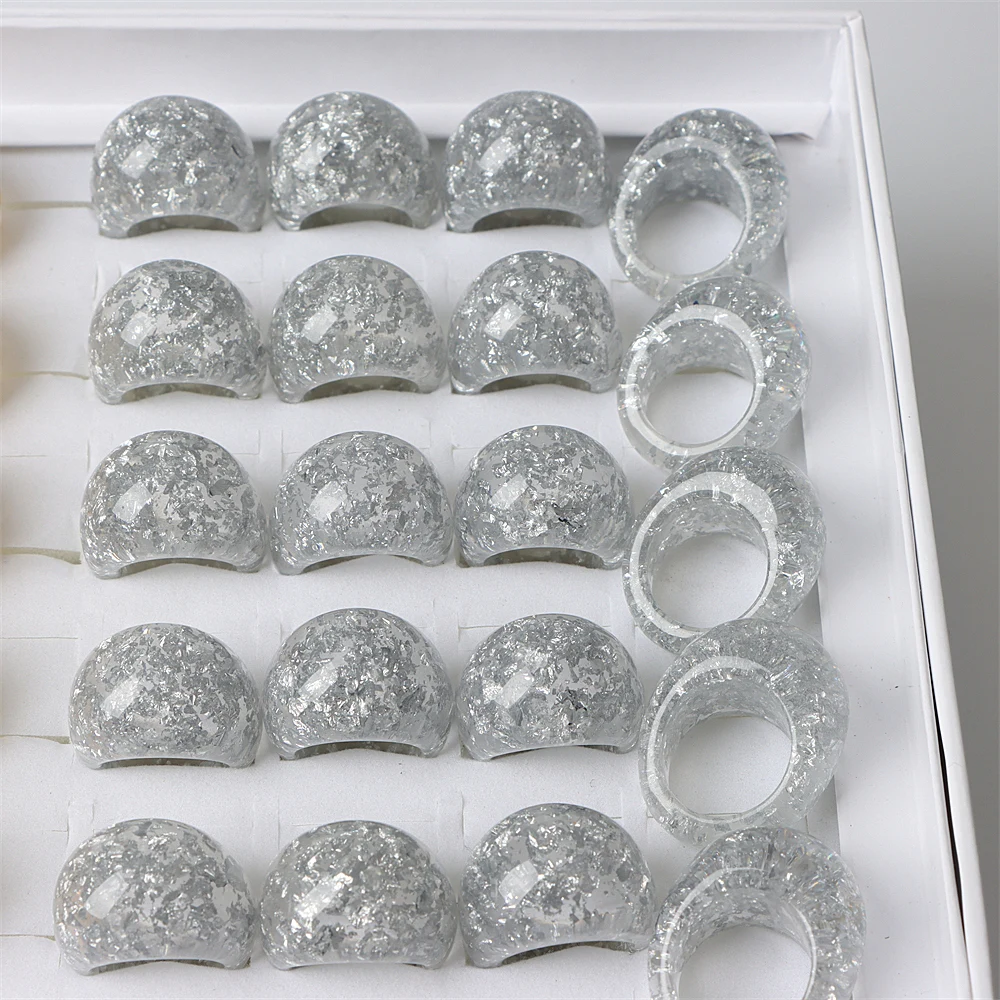 20 шт.лот, Модные прозрачные кольца из смолы для женщин, золотые и серебряные украшения, подарки Вечерние