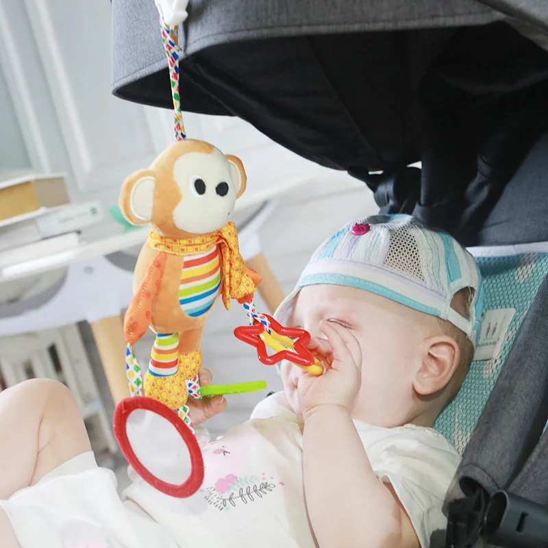 Мультяшные детские игрушки на возраст 0-12 месяцев, подвесные погремушки для детской коляски, новорожденных, плюшевые игрушки для младенцев, погремушки для мальчиков и девочек