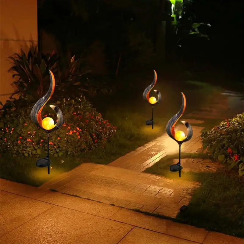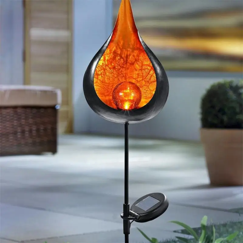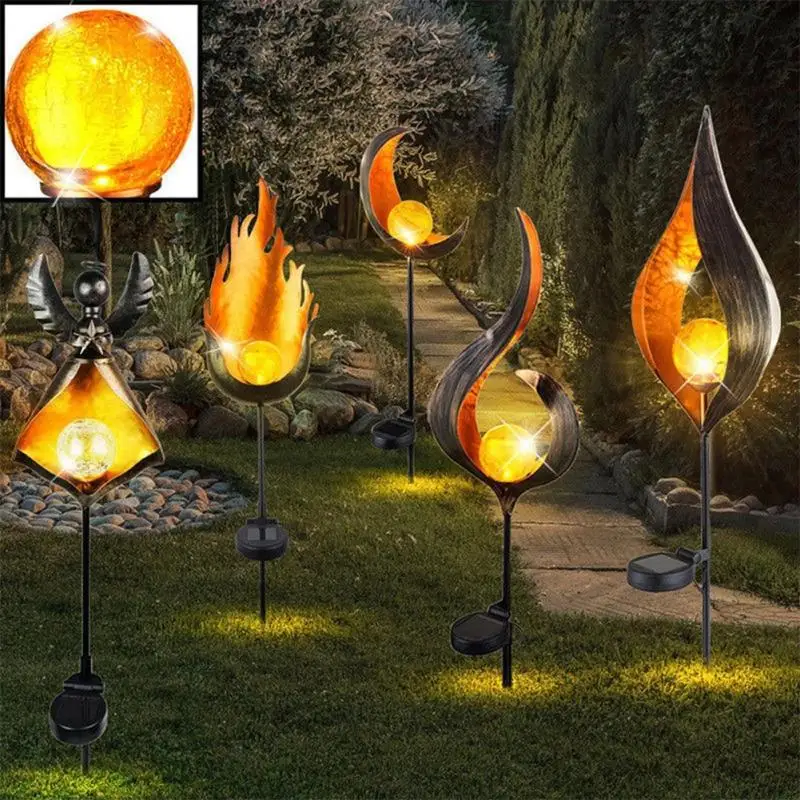 Светодиодный светильник на солнечной батарее, металлический светодиодный светильник для сада, светильник с эффектом пламени, водонепроницаемый уличный светильник, ландшафтный светильник, солнечный декоративный светильник