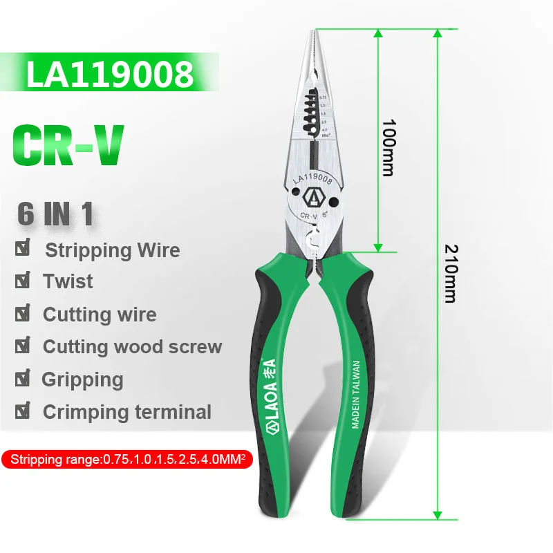 LAOA многофункциональные плоскогубцы с длинным носом Электрик Инструмент для зачистки проводов кабель режущий терминал обжимные плоскогубцы большой размер кусачки для провода
