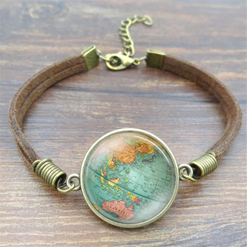 Ювелирные изделия ручной работы кожаный браслет для женщин и мужчин земной мир Карта очарование коричневый натуральный камень бусы браслет bijoux femme 2021 горячая распродажа